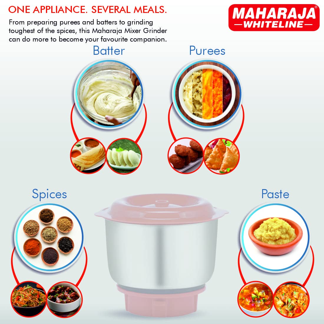• Versatile (2 jars): 700 ml grinder jar with lid, 400 ml chutney jar with lid