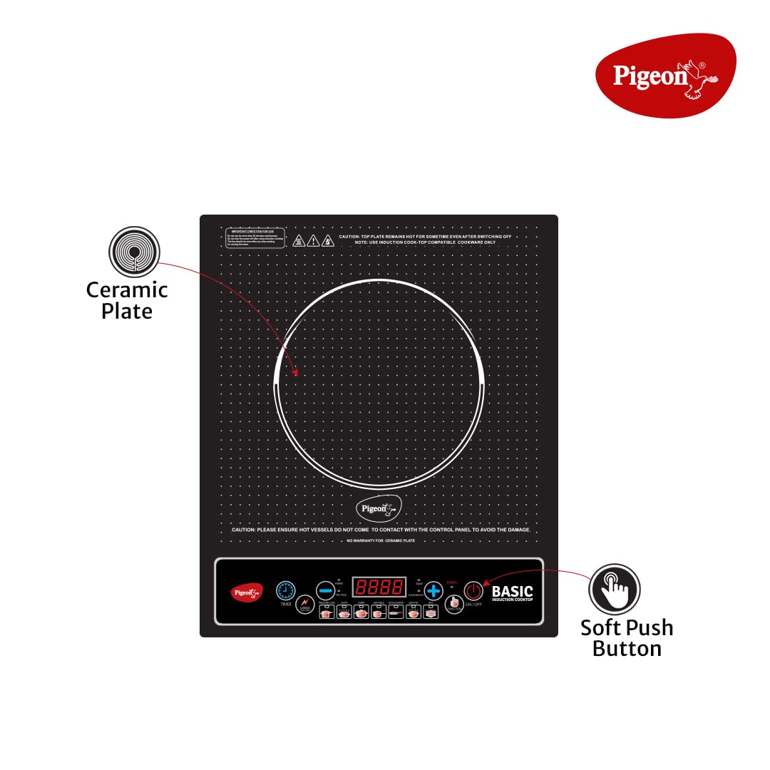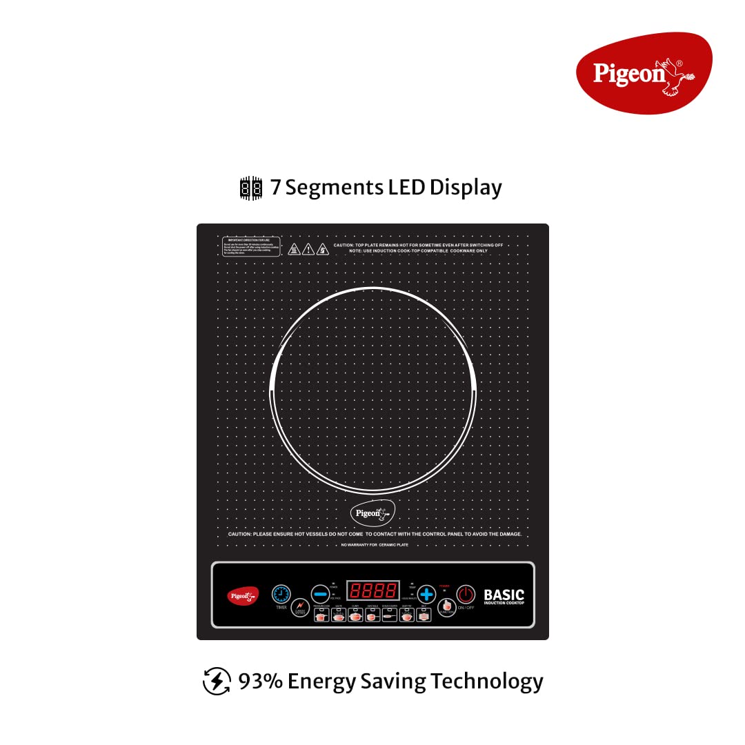 • Pigeon Basic Induction Cooktop Comes with 7 segments LED display for power and temperature. This Induction Stove comes with high-grade electrical that protects against short circuits. It's superior top plate can with-stand very high temperature, making it very durable