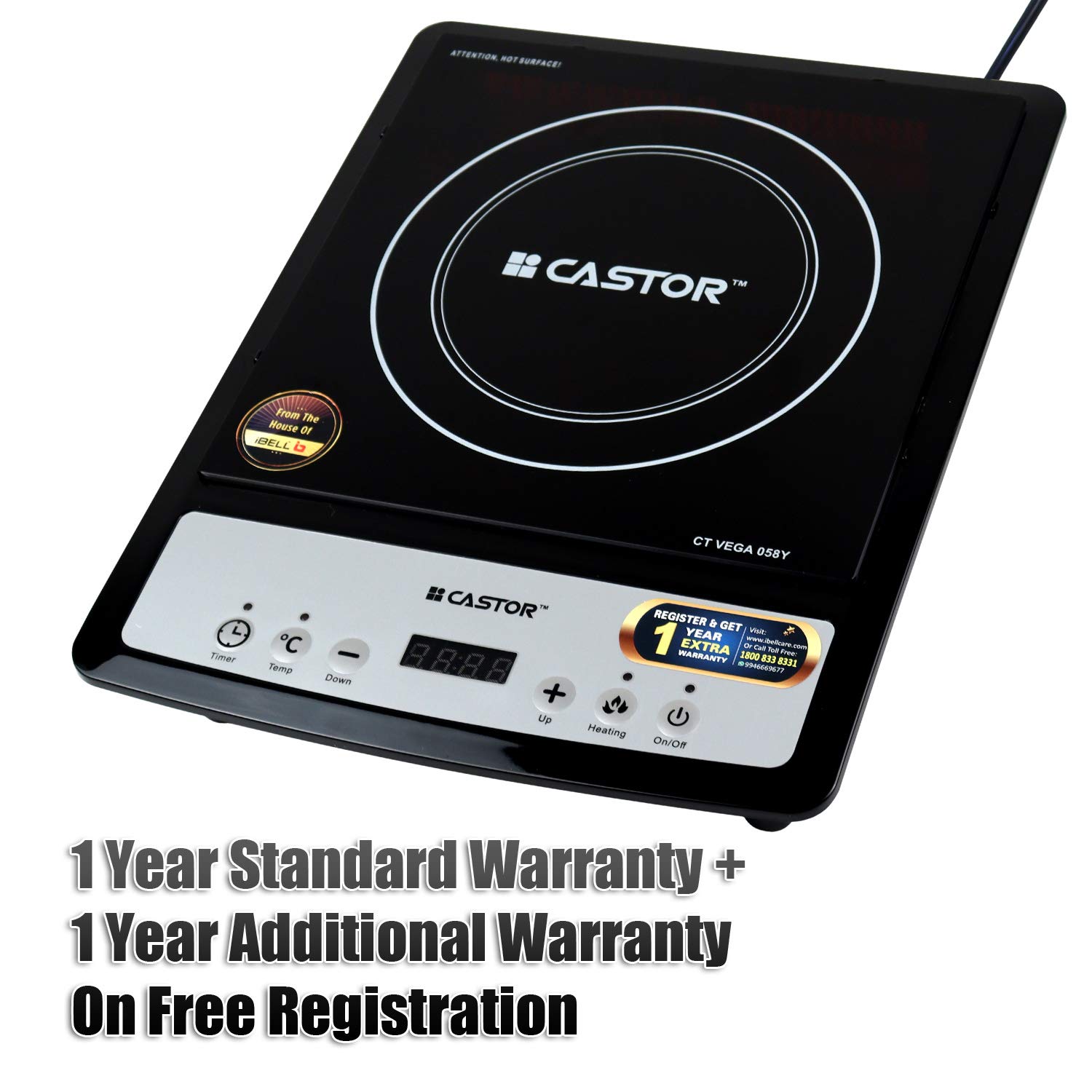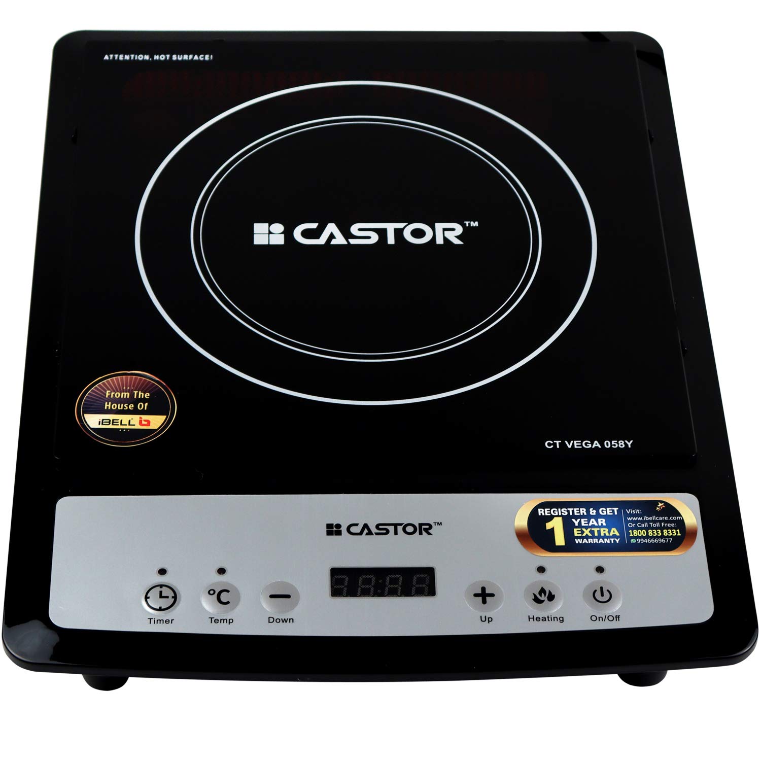 iBELL Castor CTVEGA058 Induction Cooktop Manual Aluminium Electric Stove is 2000 w Auto Shut Off and over Heat Safety Protection with Press Button Control with 1 Burner, Black