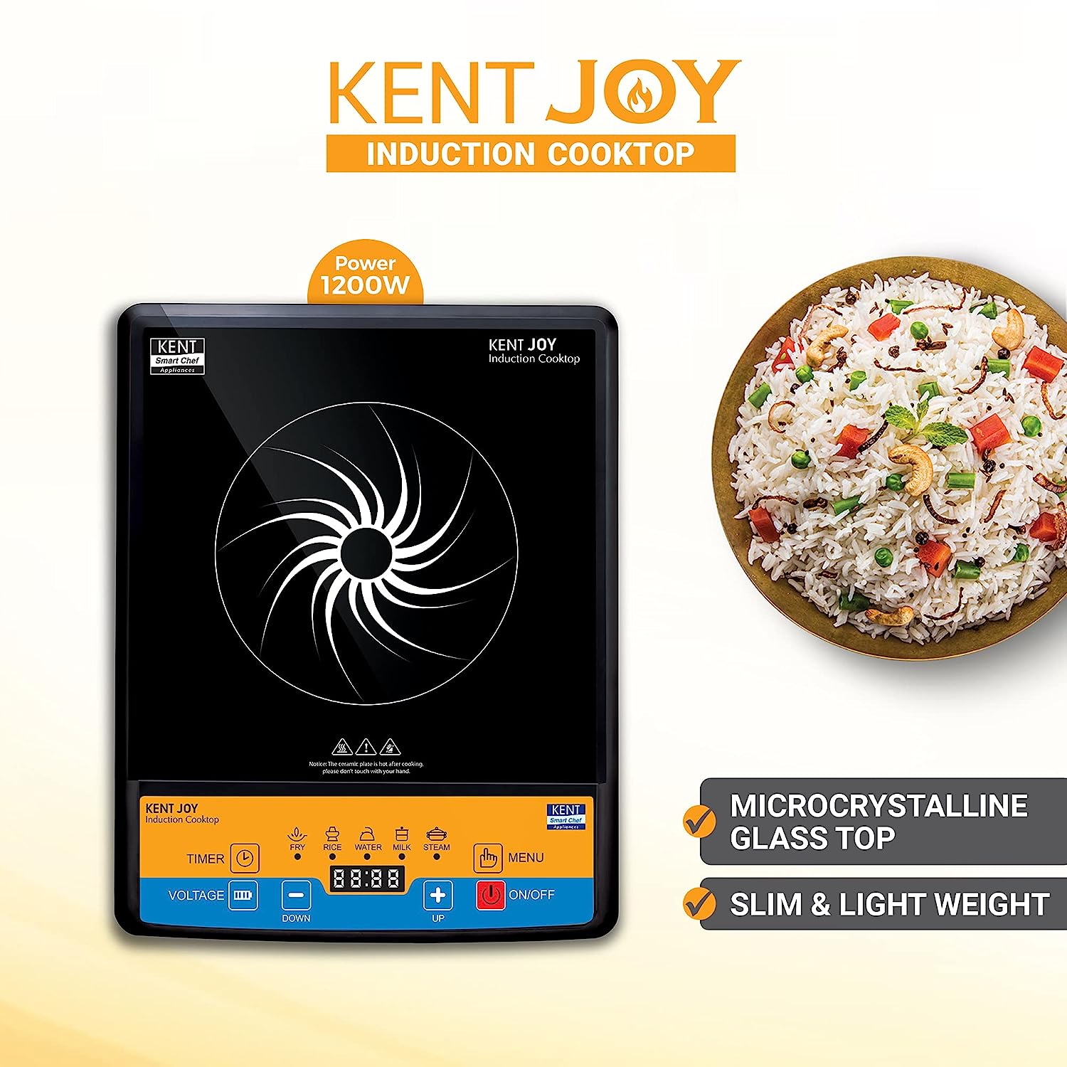 • Energy-efficient KENT Joy Induction Cooktop, safer than traditional gas and electric cookers