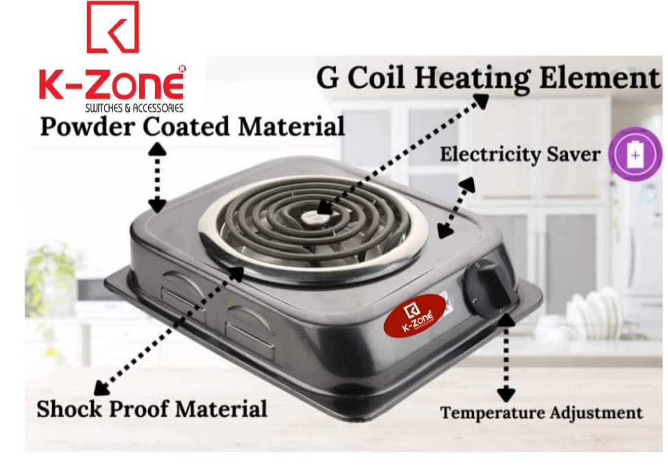 K-Zone Electric Cooking Heater Multipurpose 1250Watts | Induction Cooktop G Coil Hot Plate Cooking Stove Work With All Utensil (Black), Radiant, 1 Burner