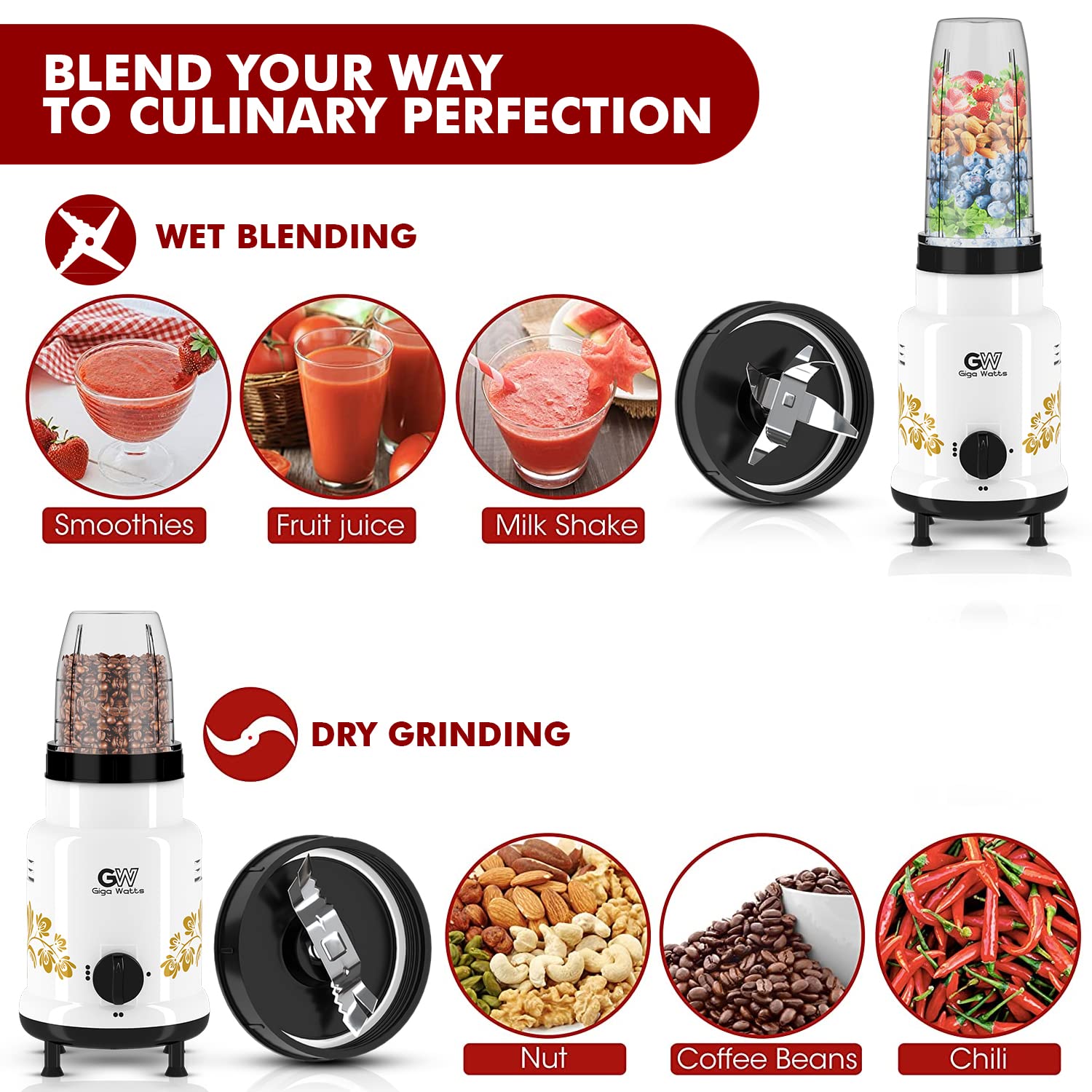 • TWO TRANSPARENT JARS: Blender comes with two transparent jars, which makes it easy to see what you are blending. The jars are made of top-notch quality material that is durable and safe to use. The jars are also dishwasher safe, which makes cleaning up after blending a breeze.