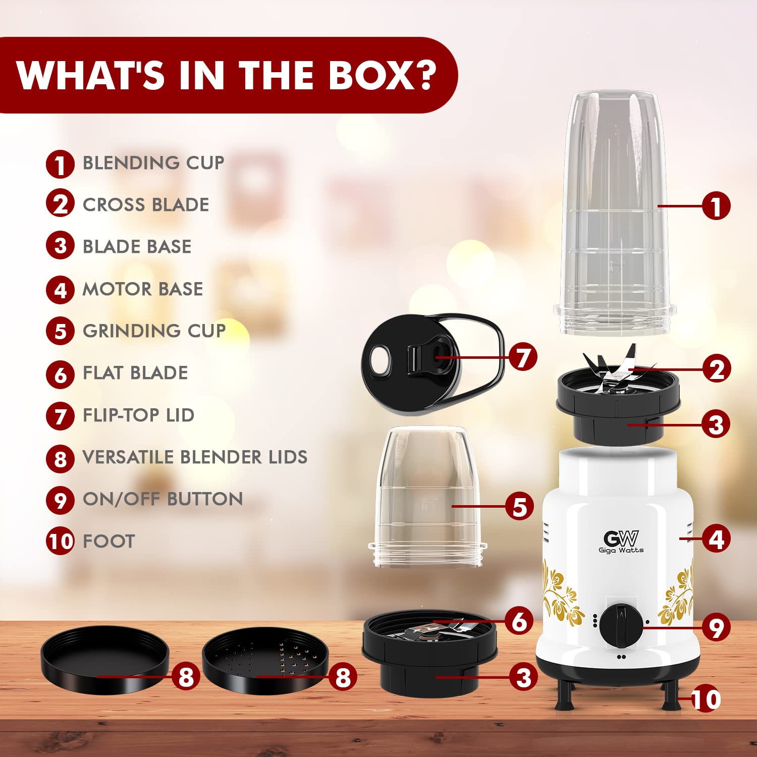 Included ComponentsNutri Belnder, Liquidizer Jar, Manual, Grinder Jar PC