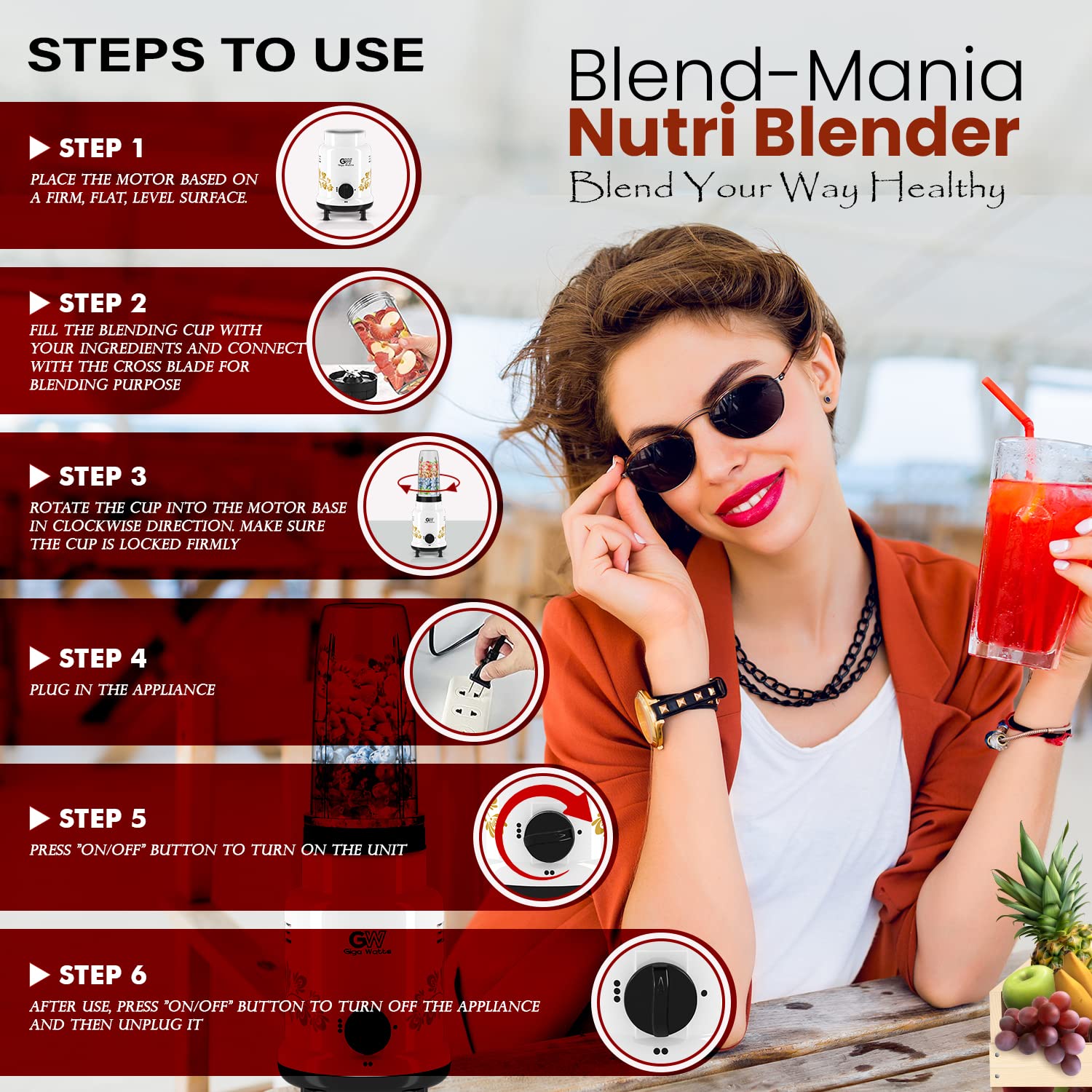 • COMPACT DESIGN: Comes with a compact design that makes it easy to store in a kitchen cabinet or on a countertop. The blender's small size also makes it easy to take on the go, making it an ideal choice for those who love to travel or need a portable blender for work or school.