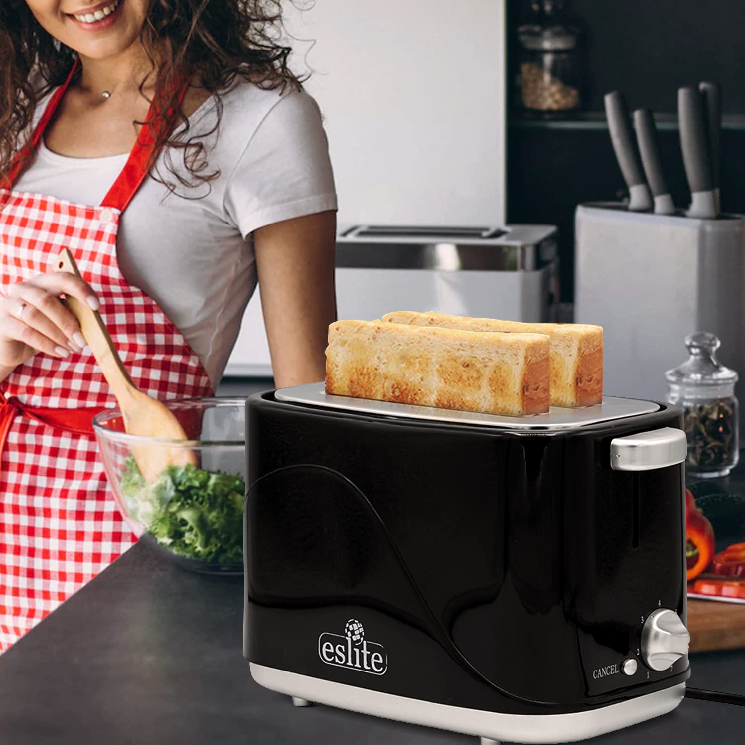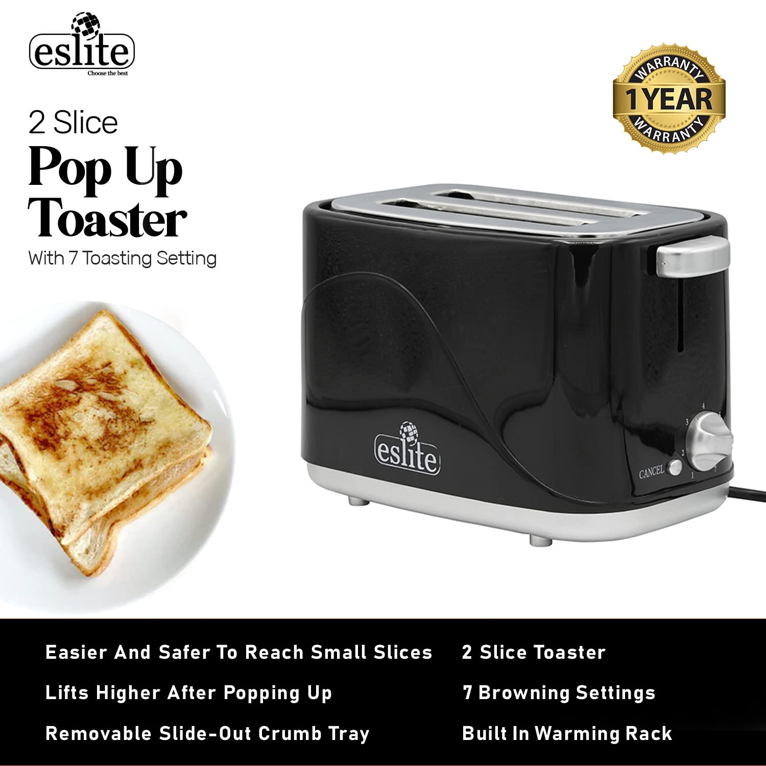Eslite Smart Bread Toaster Machine, Multifunction Kitchen Electronic Appliance, 2 Slices Auto Pop Up, 7 Browning Settings, Built-In Warming Rack, Stainless Steel Body, 1 Year Warranty (700W, Black)