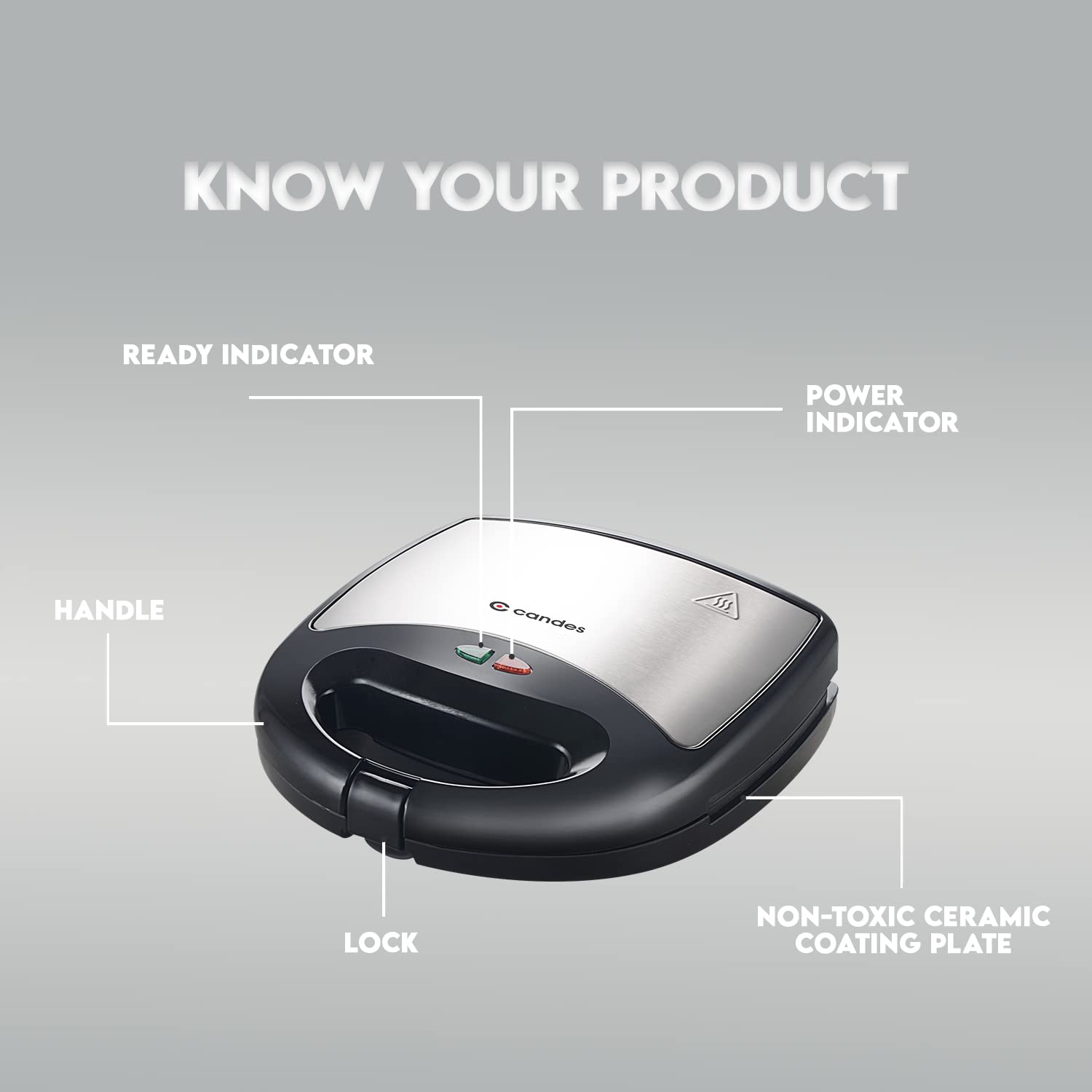 Candes Crisp Sandwich Griller, 750 W with 2 Slices Non-Stick Fixed Plates for Sandwiches at Home with 1 Year Warranty (Black & Silver)