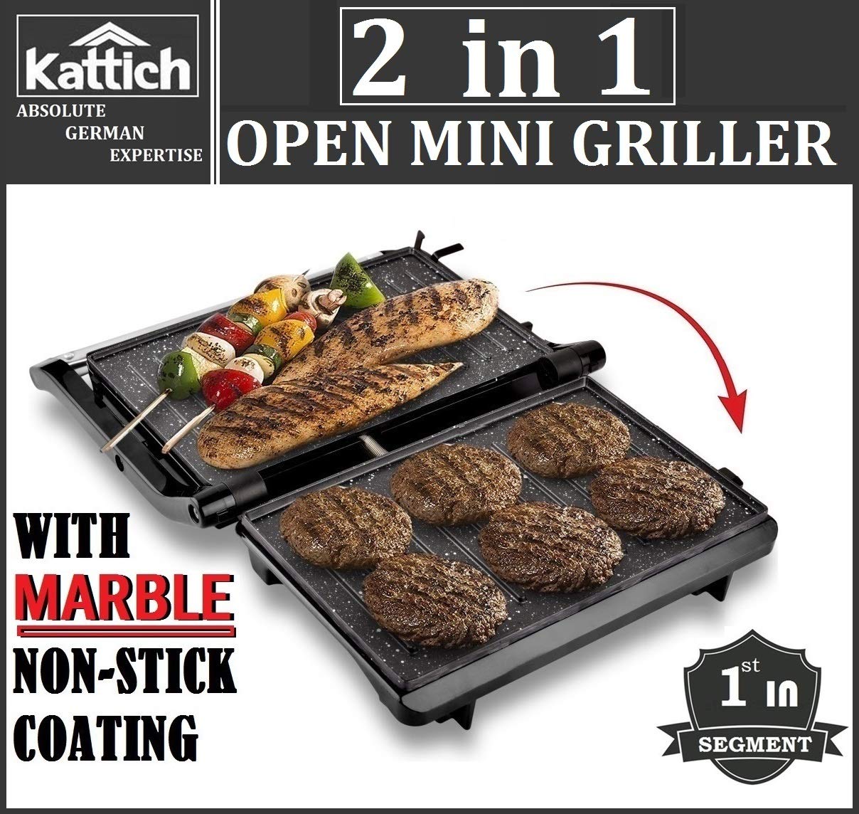 KATTICH 2 IN 1 Multi-utility Open Mini Press Griller for Sandwiches, Panini, Chicken with Marble Non-Stick Big Size Pate for Home, Cafe use (950 WATT)