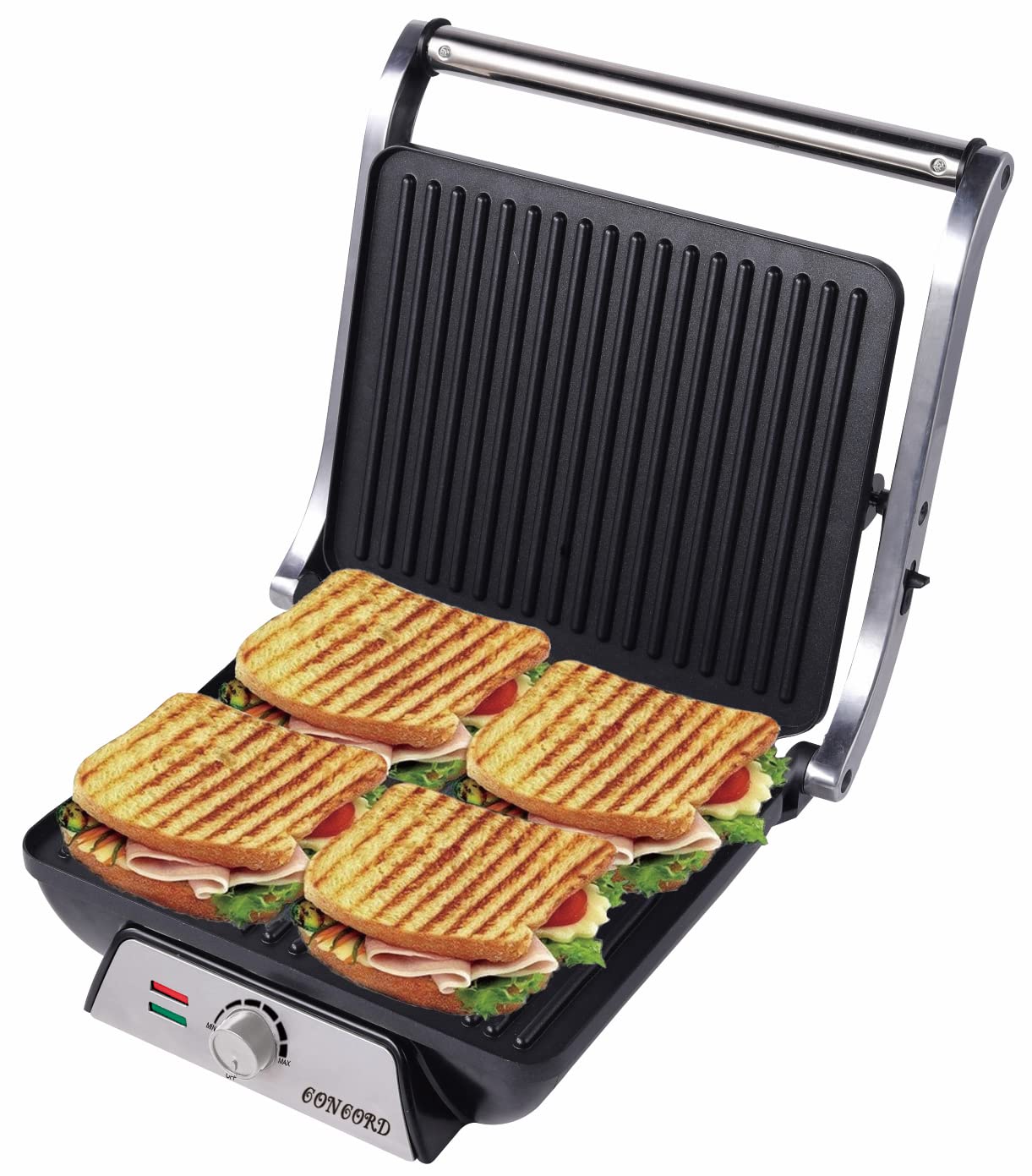 Concord 4 Sandwich Maker/Jumbo Grill/ 2000 Watts | Opens 180° | Temperature Controller | Oil Drip Tray |1.5 Metre Long Cord (Black,Silver)
