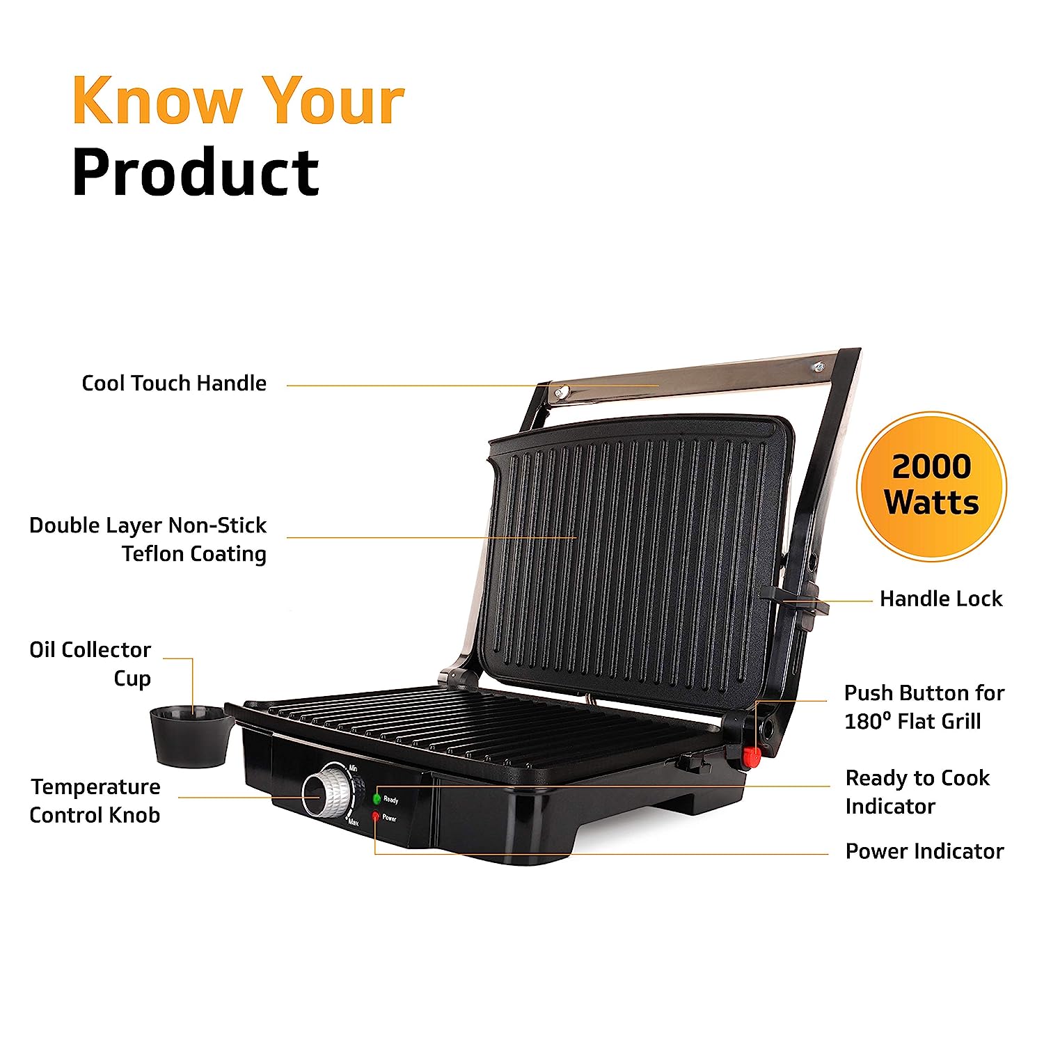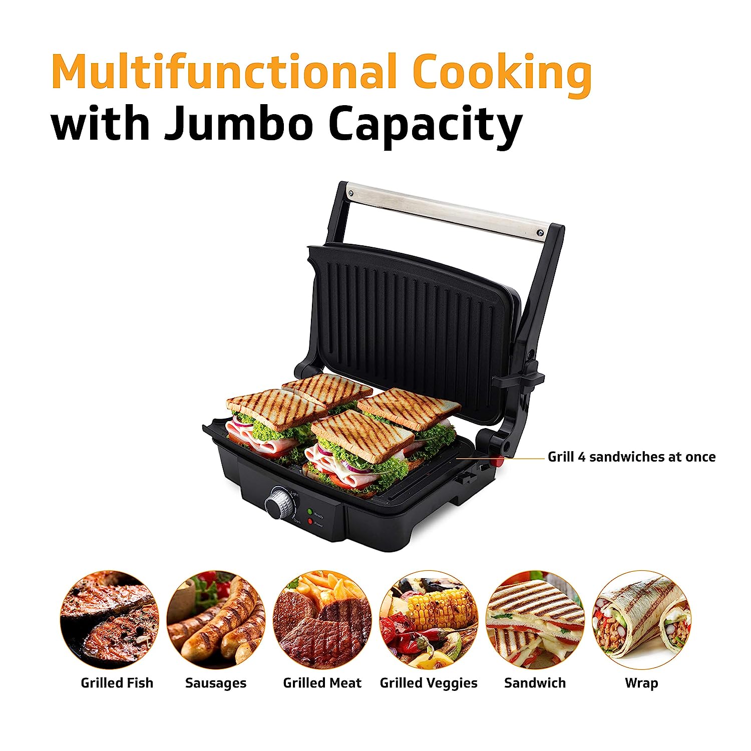 Grillking Supreme 4 Slice 2000 Watt Multipurpose Grill (Silver & Black), BBQ & Panini/Sandwich Maker, Jumbo Capacity | Dual Non-Stick Teflon Coating | 180 Degree Flat Grill | 1 Year Warranty