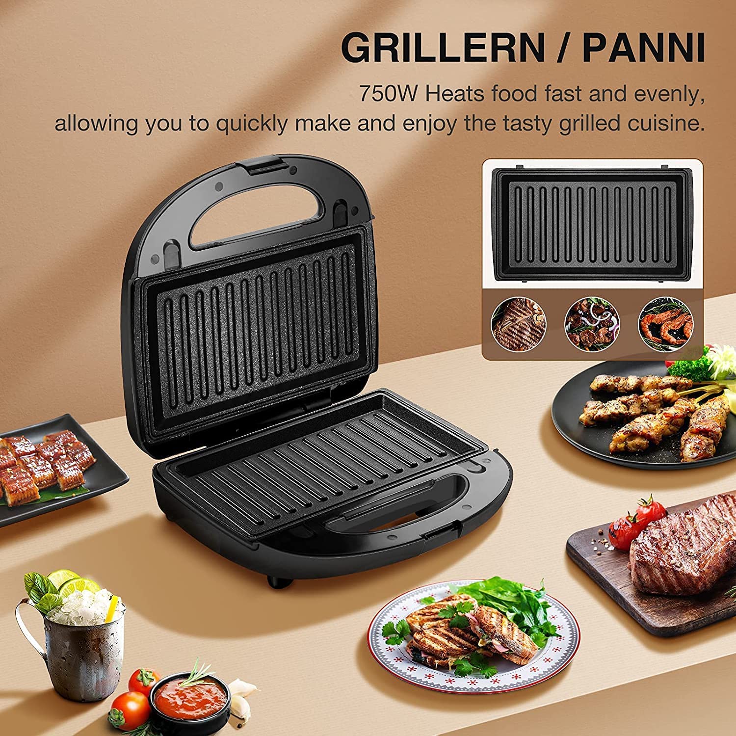 WisTec 3-in-1 Belgian Waffle Sandwich Maker,750W Power Grill Toast Sandwich Maker,Non Stick Panini Press Grill,2-Slice Toaster, Electric Grilled Cheese Maker, 3 Detachable Interchangeable Plates, LED Indicator Lights (2 year Warranty)
