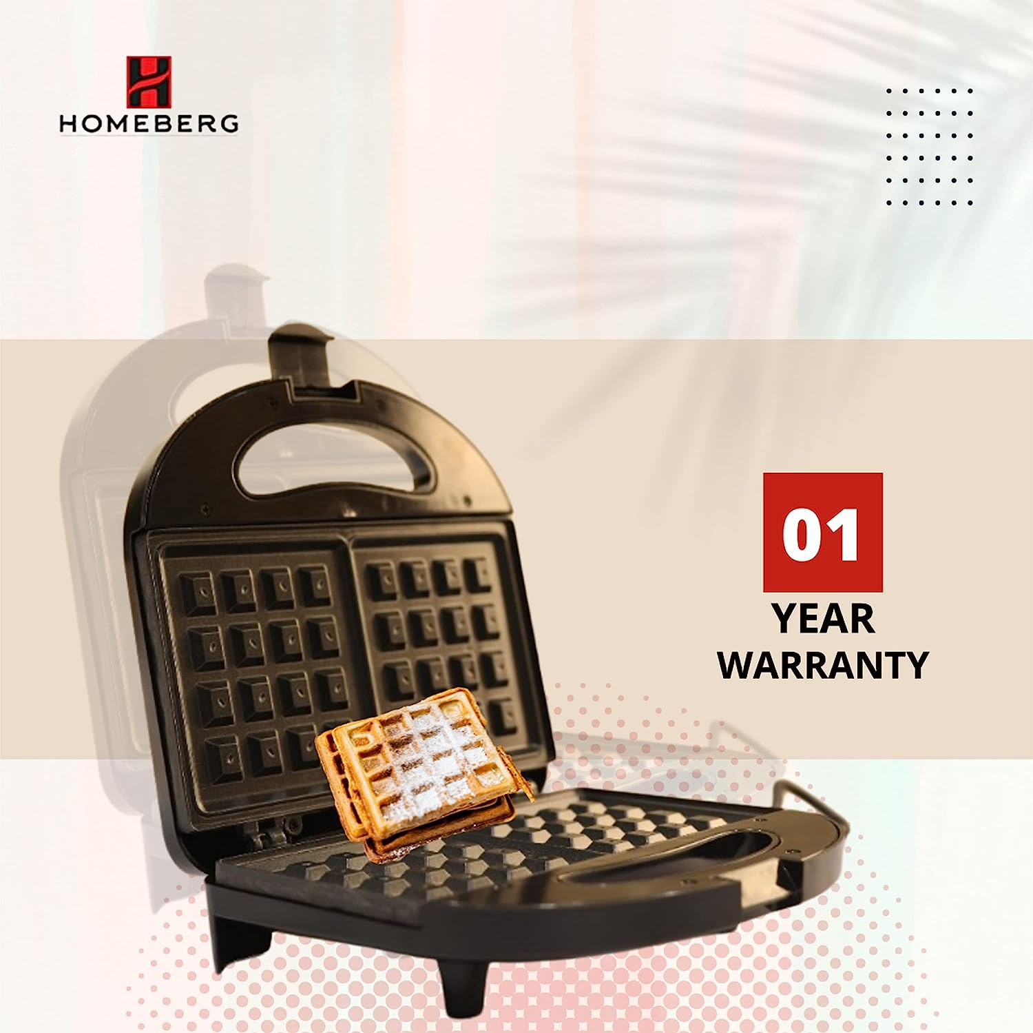 Homeberg Waffle Maker for Home| Makes 2 Square Shape Waffles| Non-stick Plates| Easy to Use with Indicator Lights (1 Year Warranty, Black) HWM629
