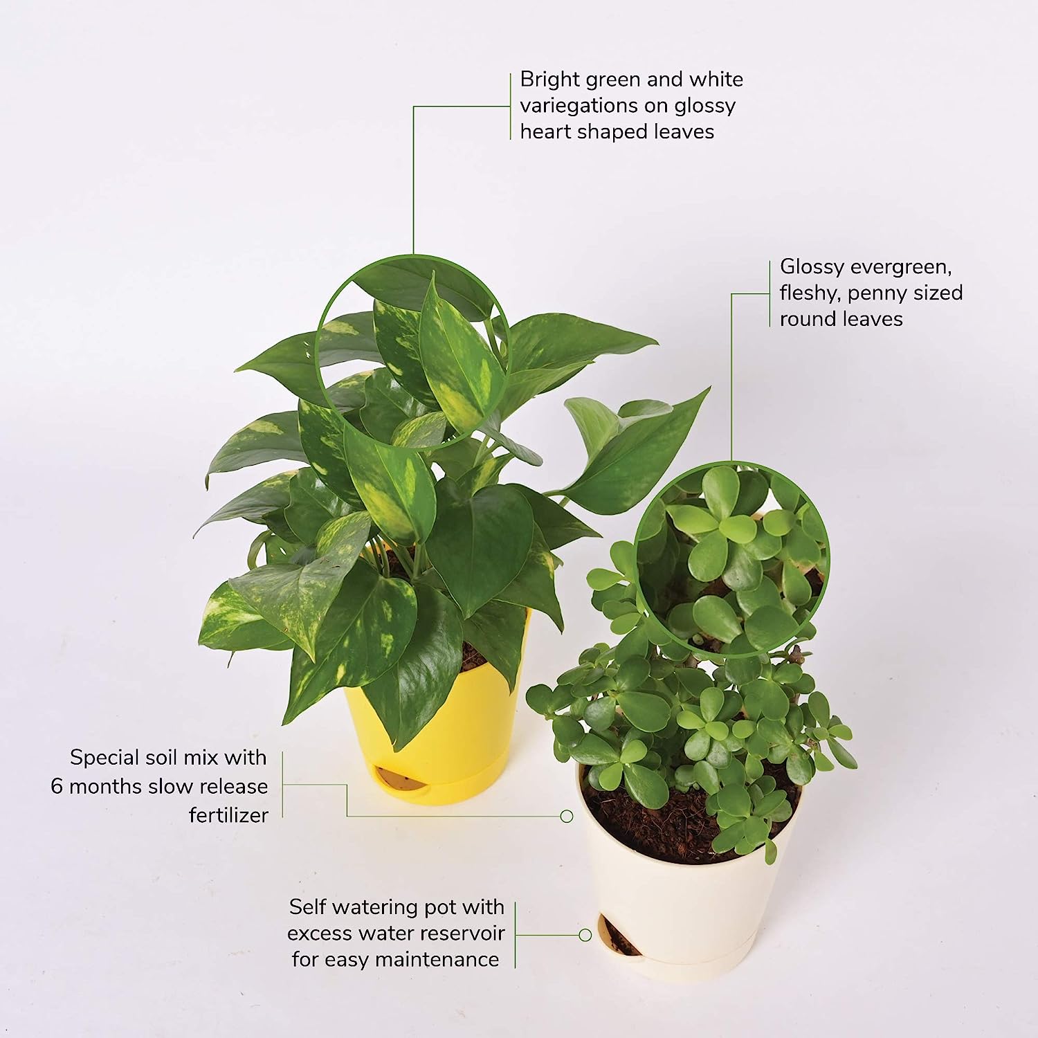 • Material: Natural Live Plant in Self Watering Pot, Qty: 2 (Plant with Pot)