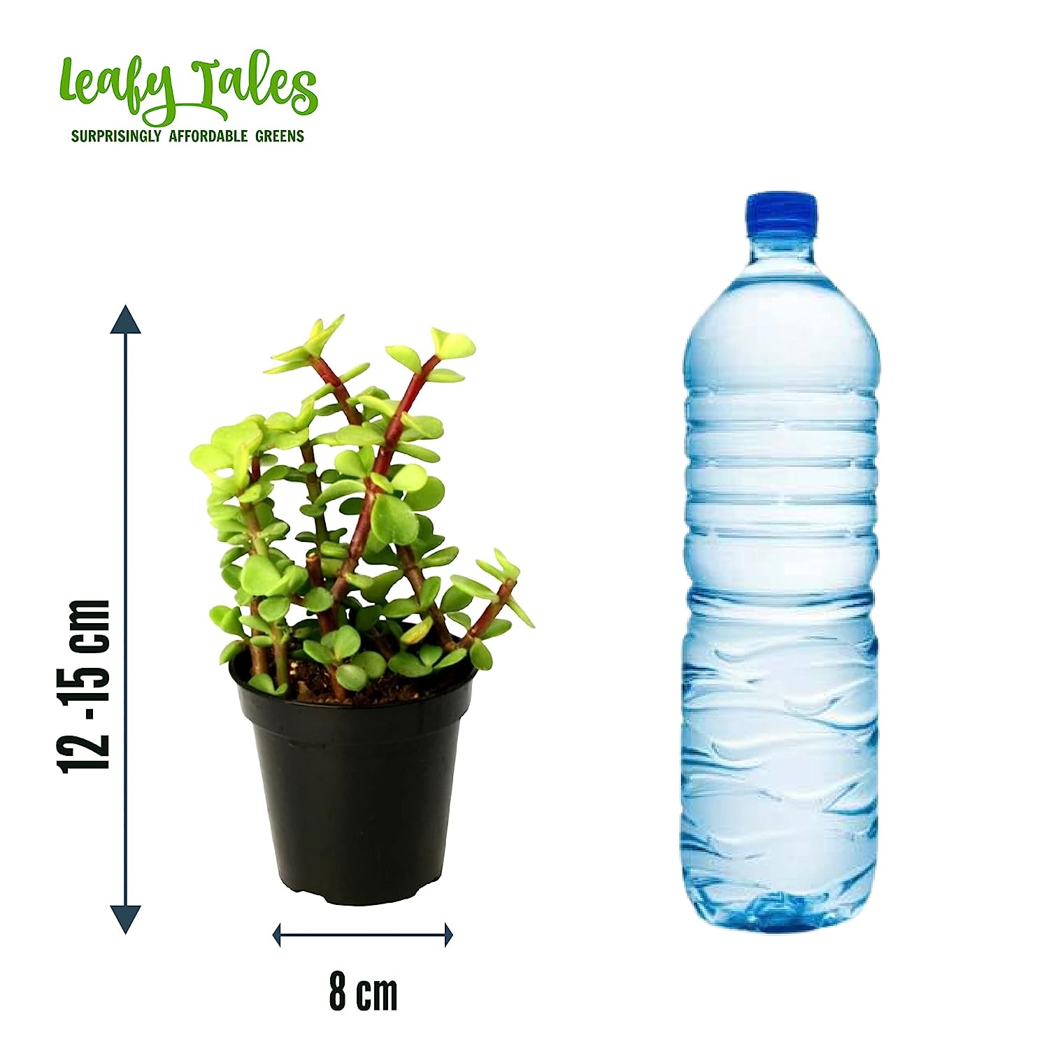 Leafy Tales Button Jade Live Plant in Black Plastic Pot, Feng Shui Plant