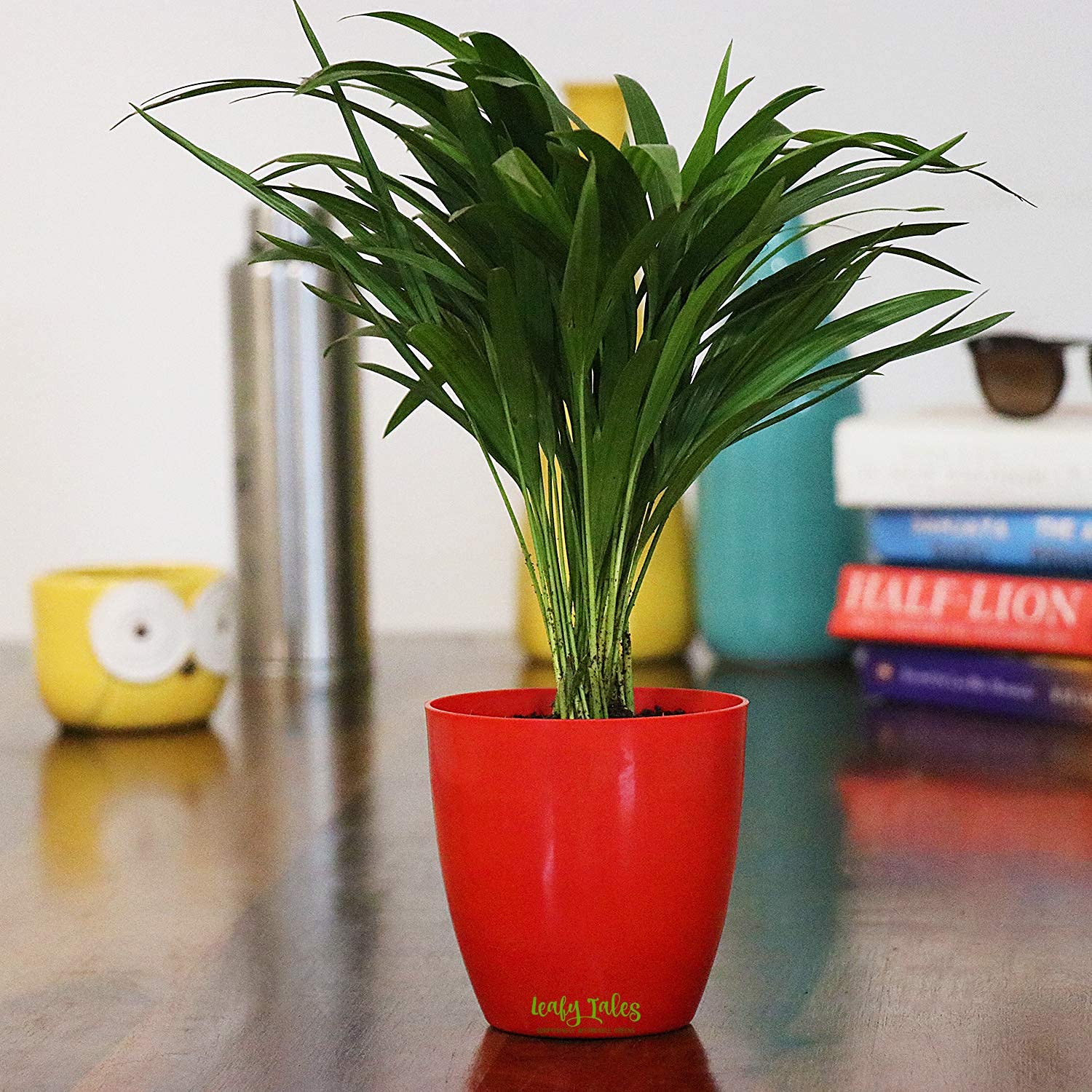 Leafy Tales Areca Palm plant in Red Plastic Pot