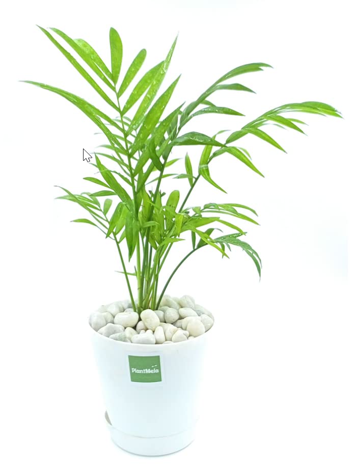 PlantMela Chamaedorea / Bamboo Mini Palm Indoor Plant in Self Watering Pot (White)