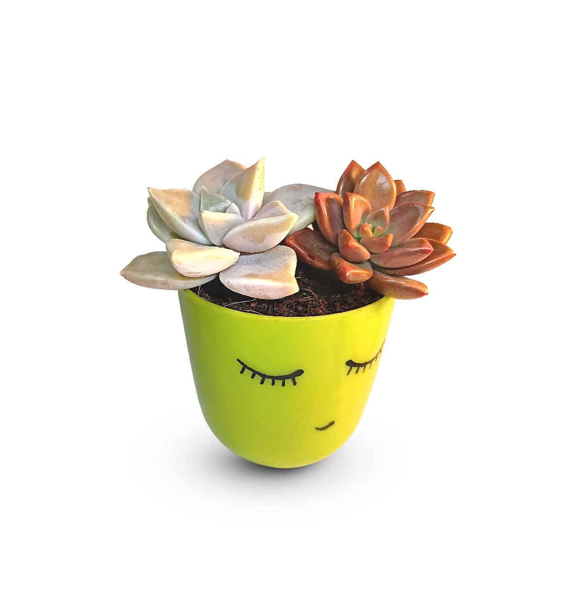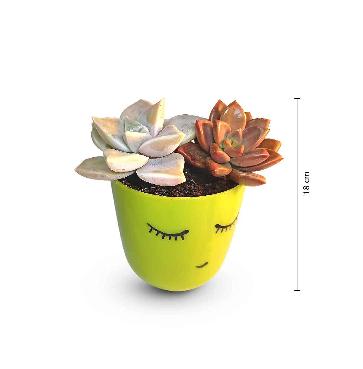 HILLMART® Natural Succulent Combo Indoor Live Plants for Home & Living Room | Cute succulent on a small cute green face pot for desktop & gift,Garden Decoration