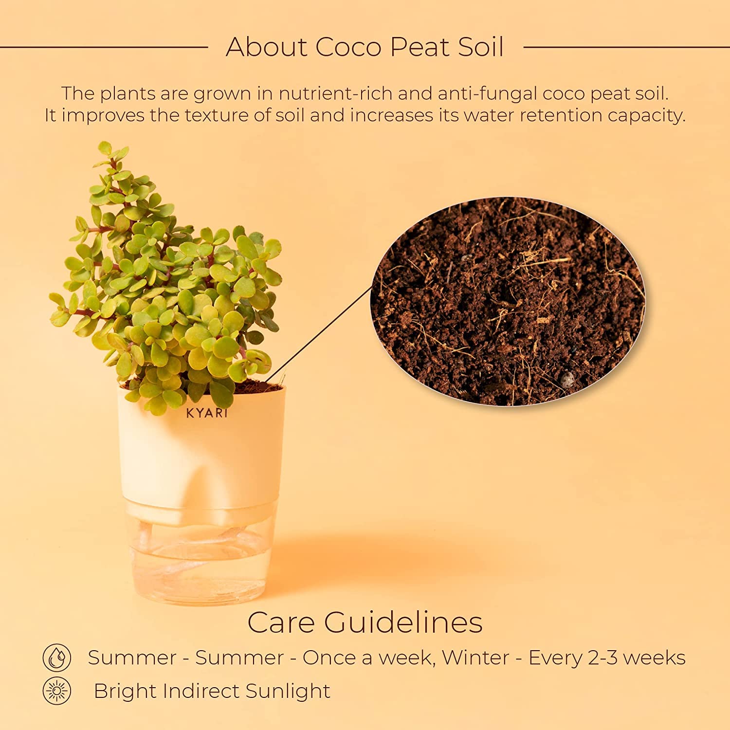 • SELF-WATERING POT: The self-watering pot stores any excess water in the reservoir underneath. self-watering pot makes it easier to care for the plant as the plants can get water as and when required from the reservoir and you will have to water it less. As these plants require minimal care, they are the perfect choice for your home and office. The reservoir will prevent any spillage or leakage from the pot onto your desk, floor or tabletop.