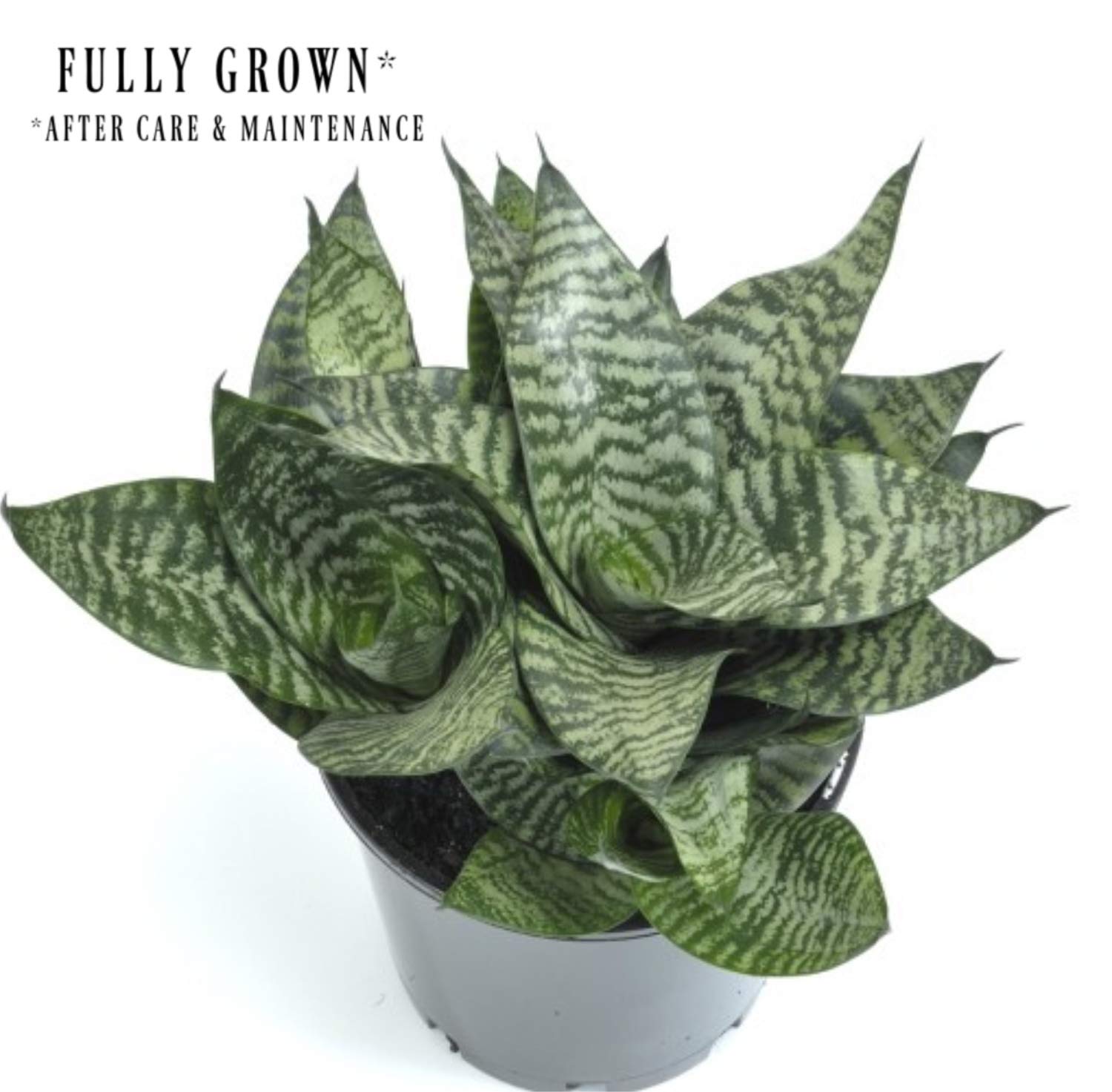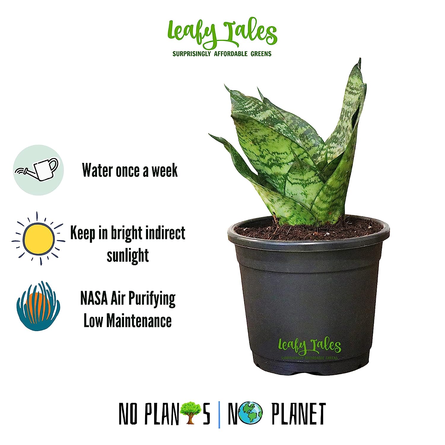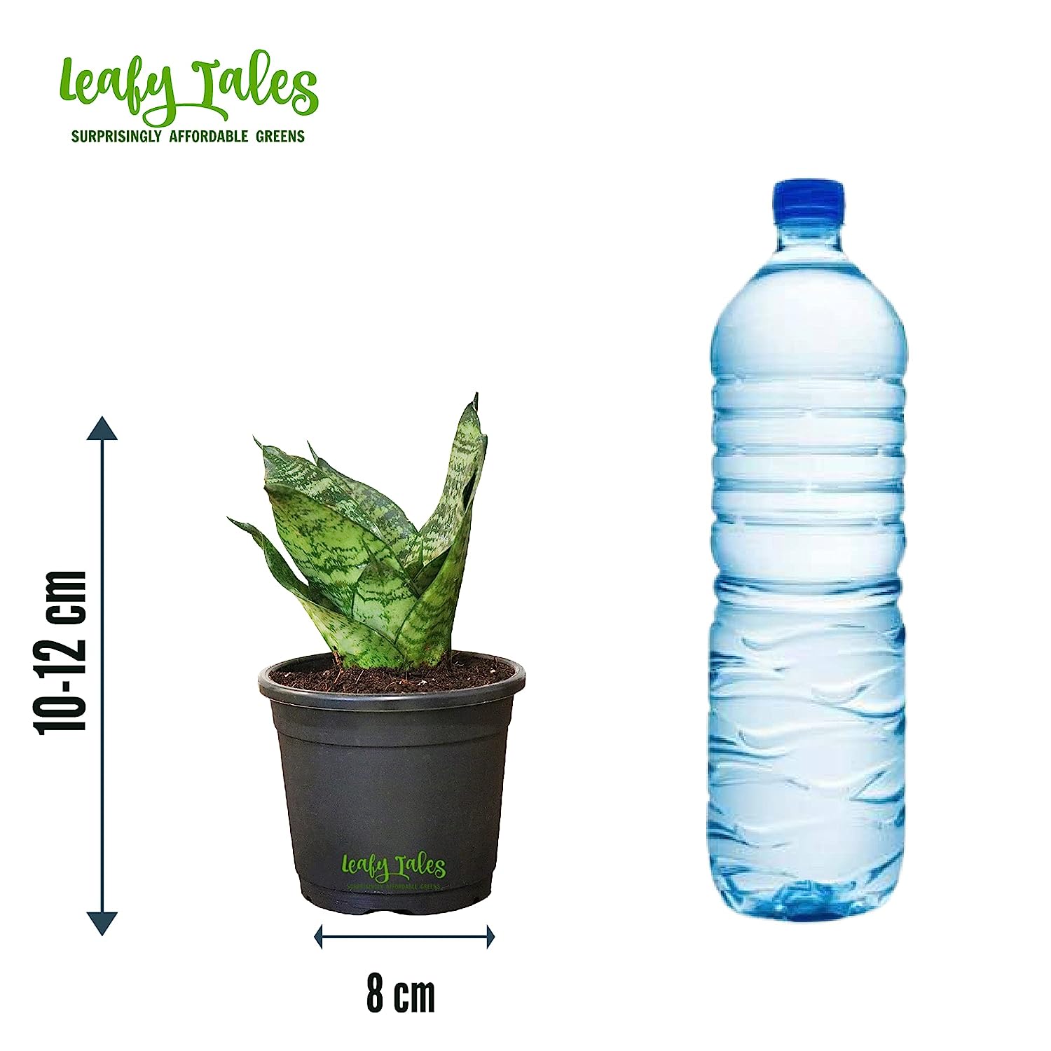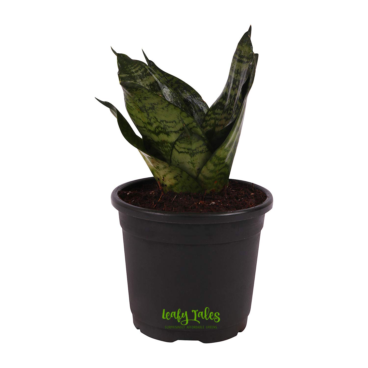 Leafy Tales Sansevieria Green Live Plant in Black Plastic Pot (Snake Plant) | NASA Indoor Plant (Model: Snake Small+BlackPlastic Pot)