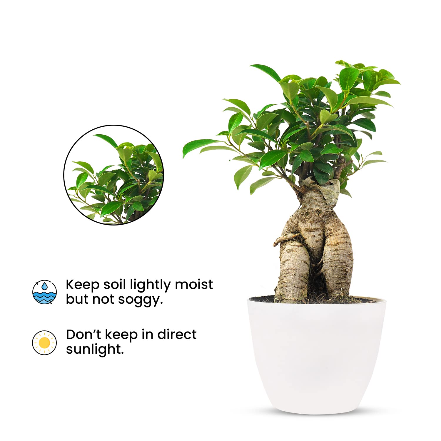 Plant A Leaf Indoor outdoor Ginseng Ficus Bonsai Weeping Fig With White Pot Air Purifying for Home Decoration/Living Room/Bedroom/House/Office (Pack of 1)