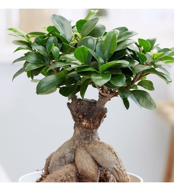• About The Ficus Bonsai Live Plant : Ginseng Ficus as a bonsai gives the effect of a small tree standing on legs. Ficus Bonsai grows oval-shaped, dark green leaves. Trunk of Ginseng Ficus is thick and bulbous, reddish gray, and has tiger-like stripes. The leaves grow densely, giving you a thick canopy.
