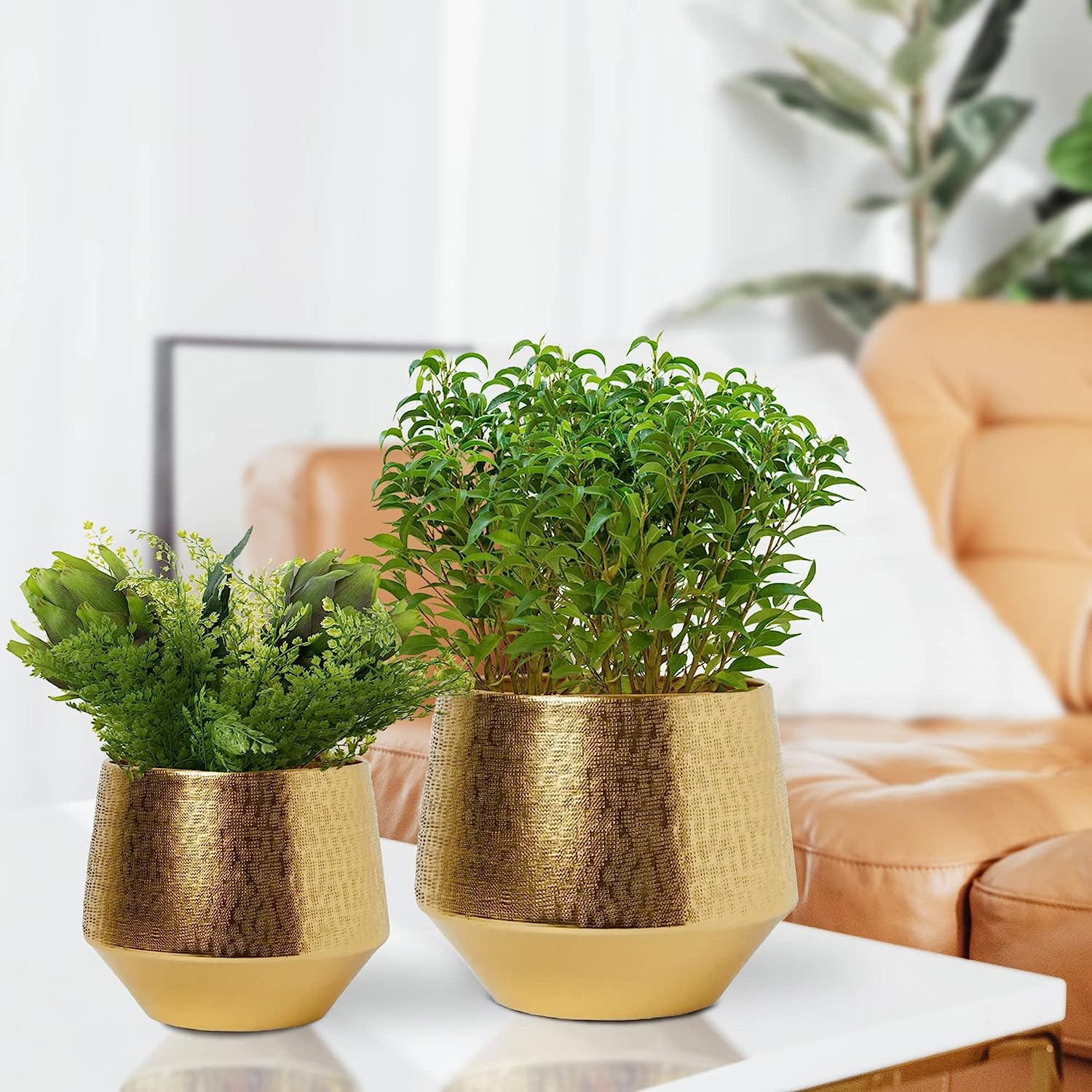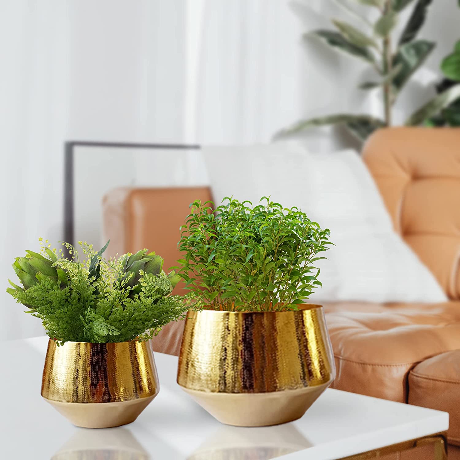ecofynd 6 inches, Pack of 2 Eion Metal Plant Pot, Decorative Modern Indoor Planter Flower Pots, Home Garden Decor Planter for Living Room Bedroom Interior (Gold, POT022)