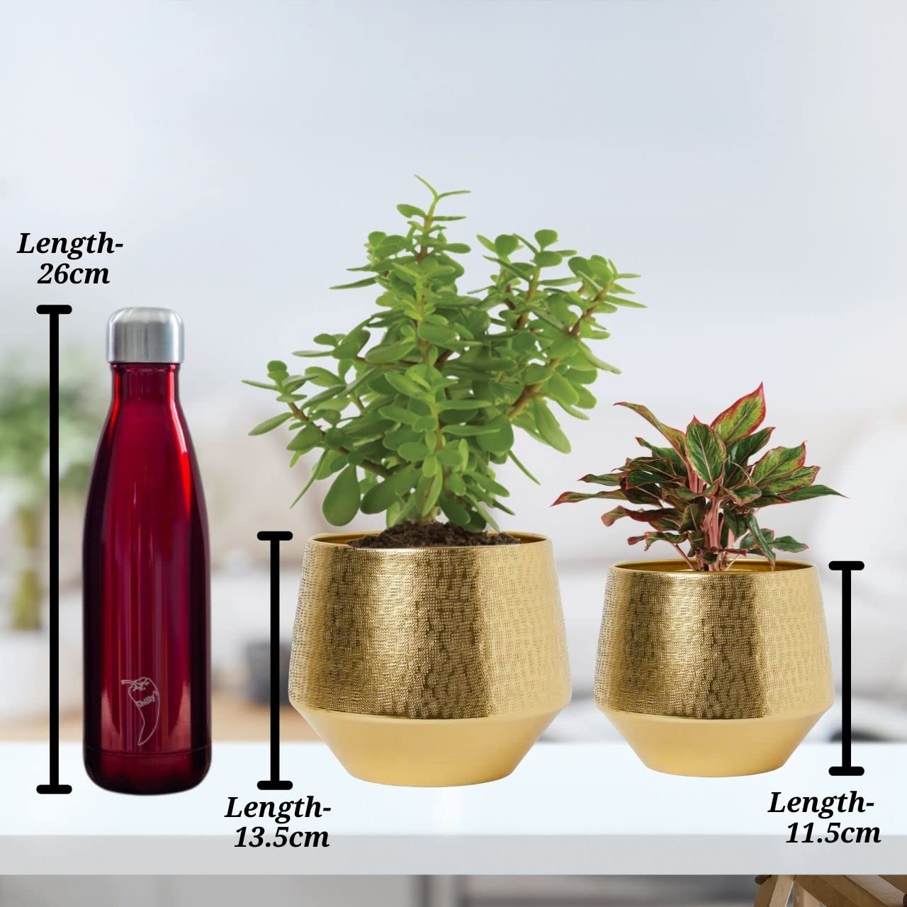 • Practical: Metal round flower pots with no drainage holes are very suitable for plants of different types such as cactus, tiger piran, lily, mint, orchid, tulsi, herbs or ivy and Its Gold appearance reflects beautiful colors under sunlight and light.