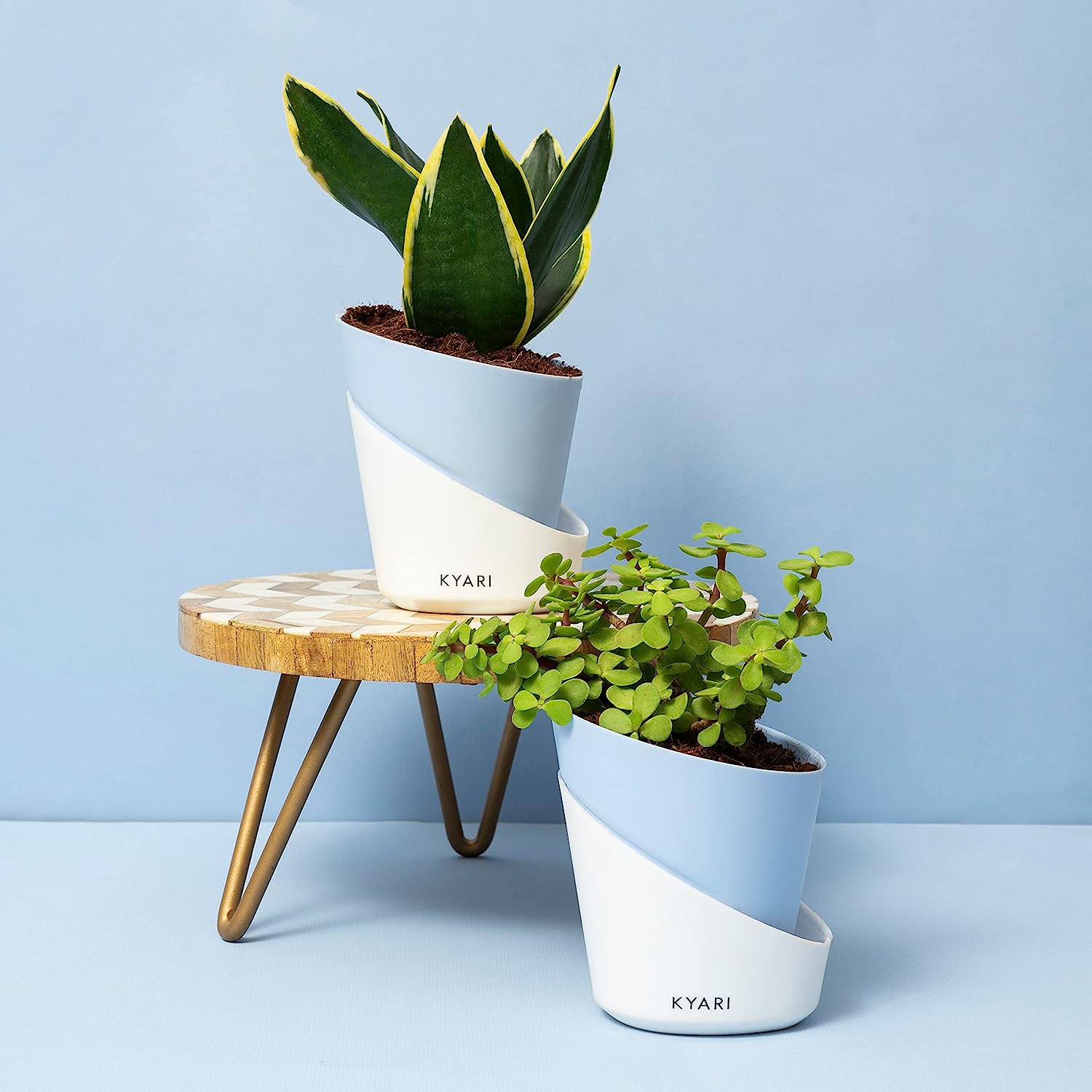 Indoor Plants Combo of Jade Plant and Golden Hanii Money Plant with Baby Blue Self-Watering Pot, Home and Office Decor, Air Purifying Combo