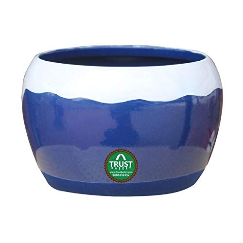 TrustBasket Table Top Planter Bowl with Saucer - Blue | Flower Planter for Home, Office, Living Room, Balcony, Garden Decoration, Best for Indoor Plantation
