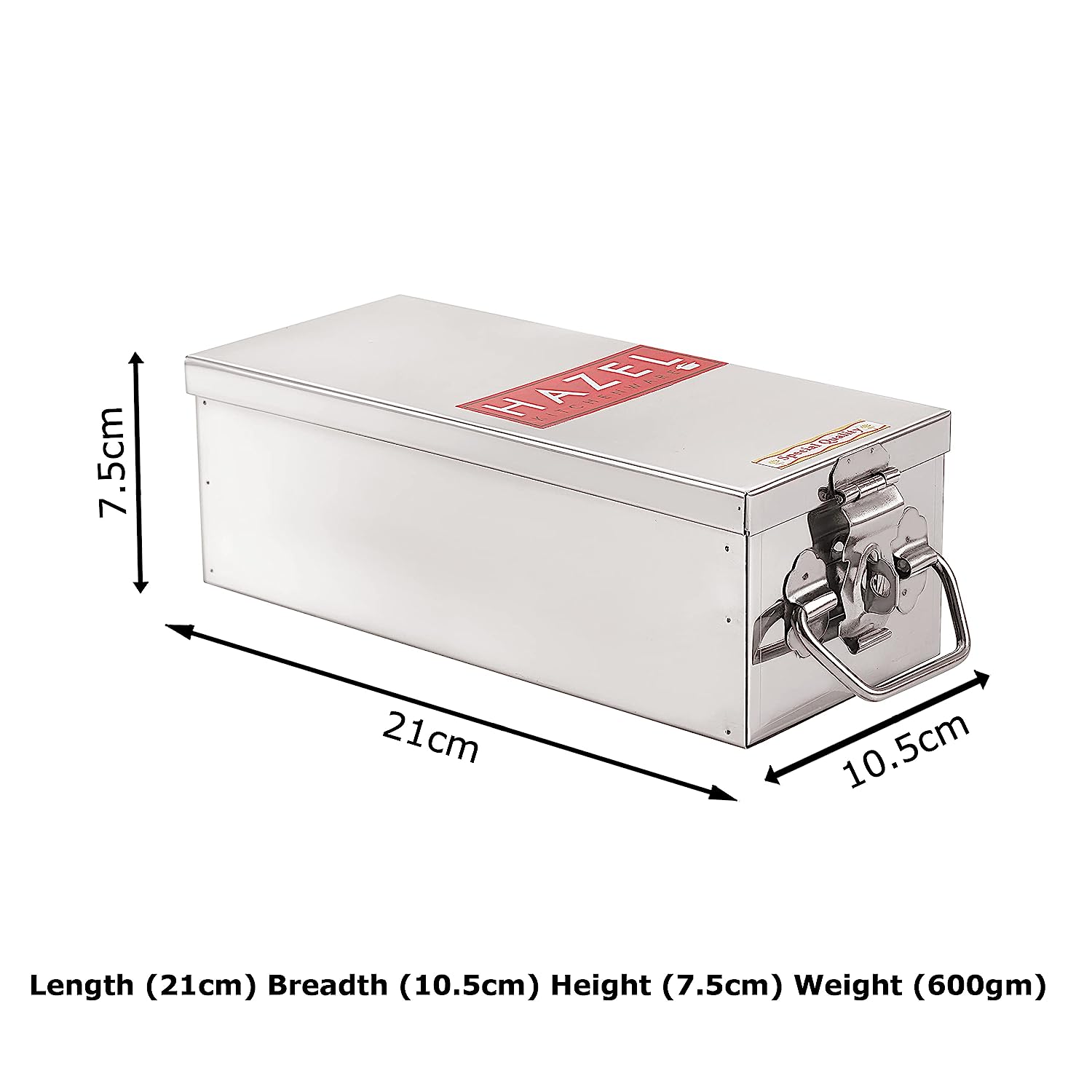 HAZEL Jewellery Box For Women | Stainless Steel Locker Box For Jewellery & Bank | Steel Cash Box For Shop - Silver (8.26 Inches x 4 Inches)