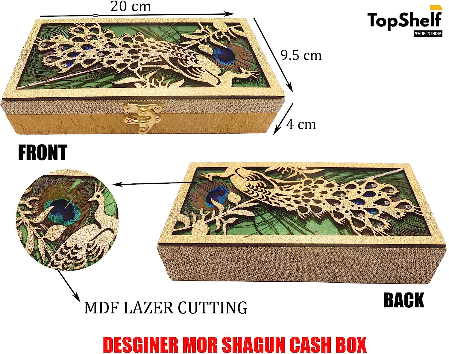 • TOPSHELF Presents Designer lazer shagun cash box or gaddi box for shagun .The fancy Sagan cash box is made of MDF(wooden) .TOPSHELF Presents full range of variety of shagun cash box or gaddi box.or money box