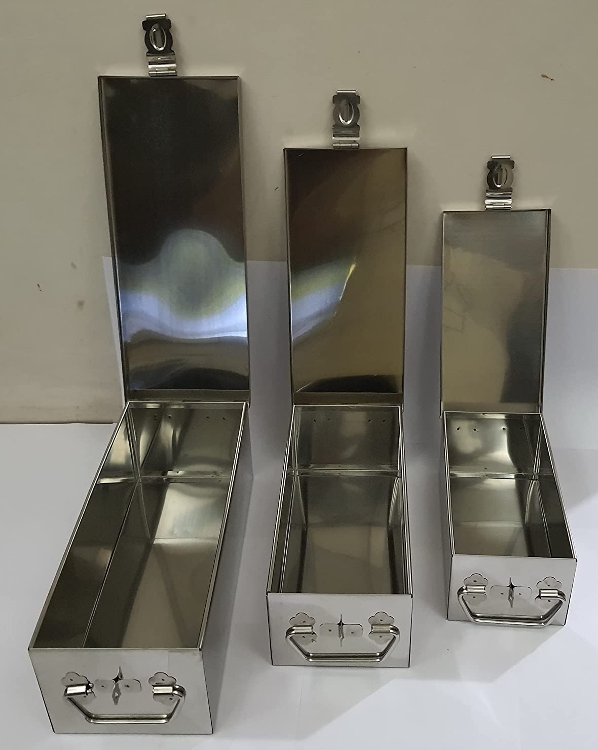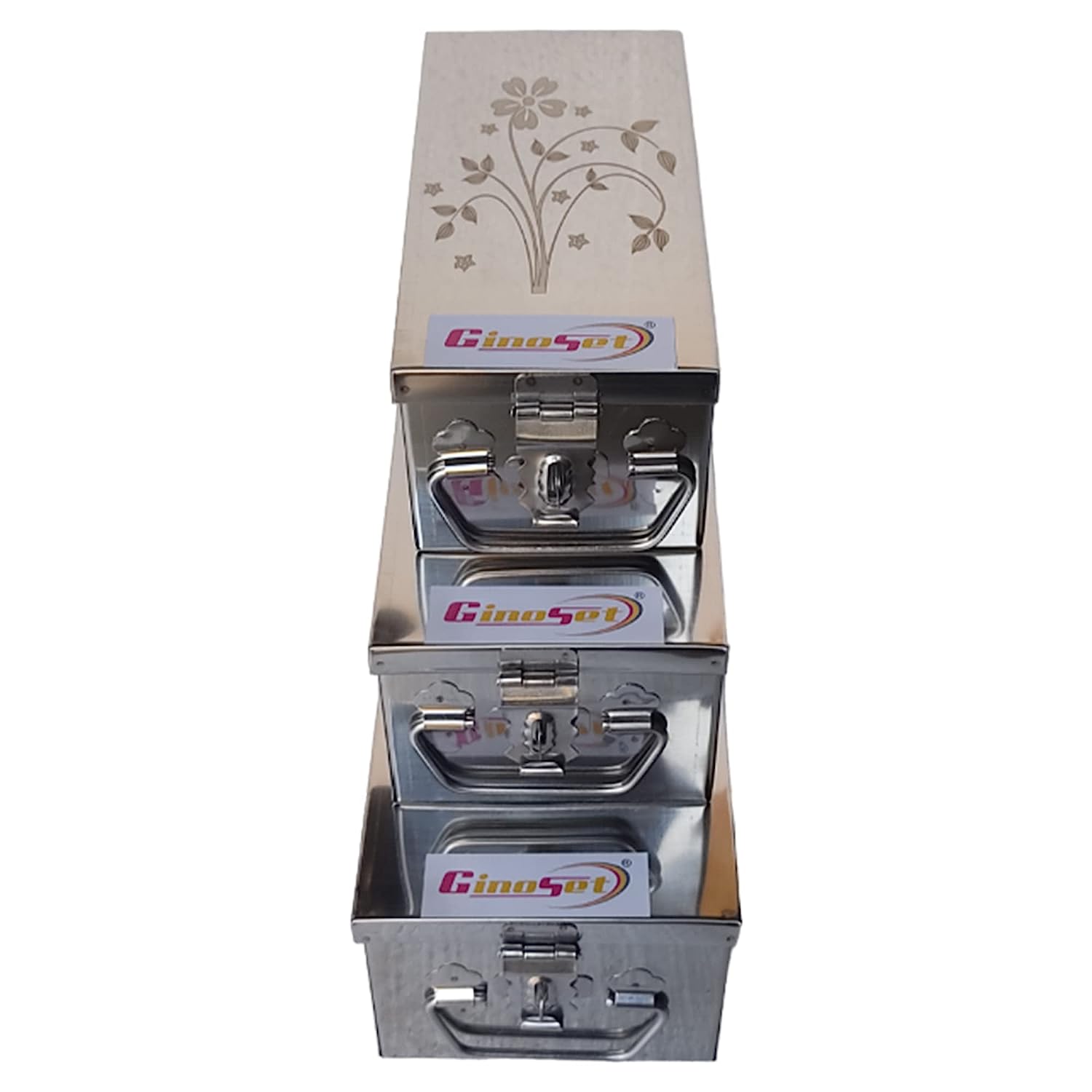 GinoSet® Stainless Steel Locker Boxes Jewellery Boxes Cash Peti Set (Multi_Pack of 3) Size -8 Inch, 10 Inch, 12 Inch. With Laser Printed Design - Silver)
