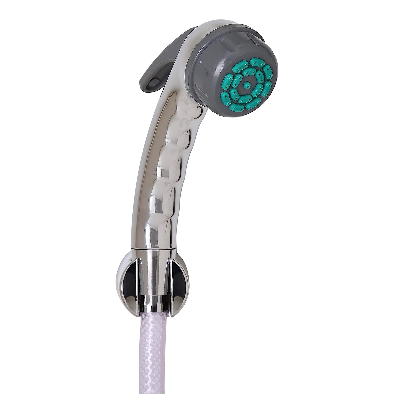 Hindware F160027 ABS Faucet with Rubbit Cleaning System, Flexible Tube and Wall Hook, Chrome, Painted Finish