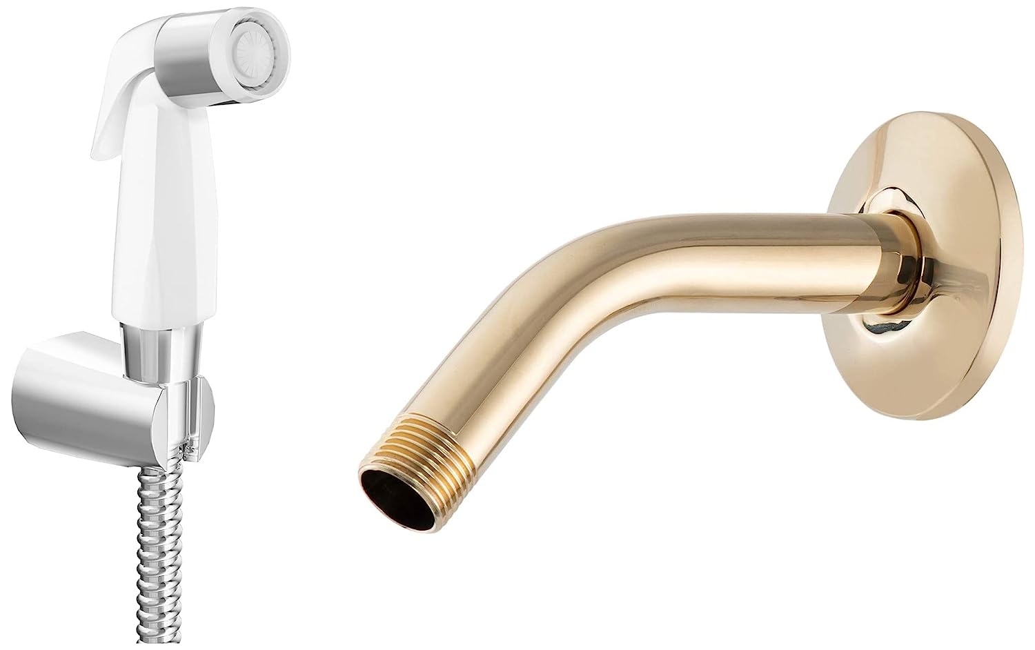 Kohler - 12925IN-CP Complementary Basic Health Faucet, with Metal Hose and Holder (White) & 1061577IN-AF Complementary Shower Arm with Escutcheon (Vibrant French Gold Finish)
