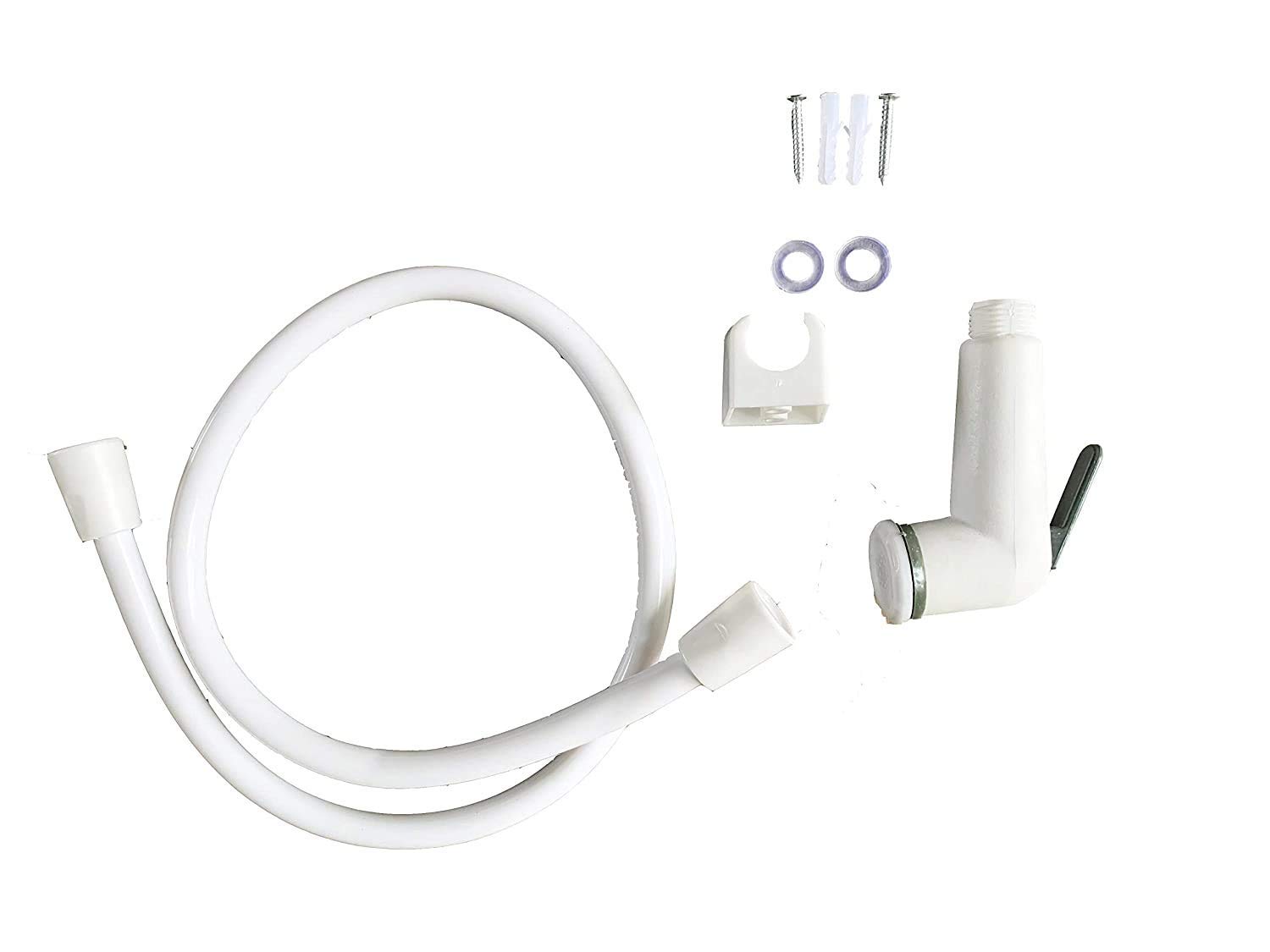 od Plastic Toilet Jet Spray Health Faucet with 1 m Flexible Hose and Wall Bracket ( White, Large), Brushed