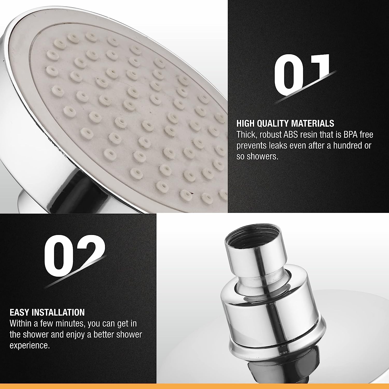 • 【????????????????????????????????????????】: Anti-Corrosive and Rust-Proof Stainless Steel ensures long lasting durability Hassle-free maintenance; Just unscrew the showerhead and rub the nozzles with your thumb or a cloth to remove the blockages; Eco-friendly and reusable packaging; Available in 4, 6, and 8 inches; 100% Made in India Shower Head for Bathroom.
