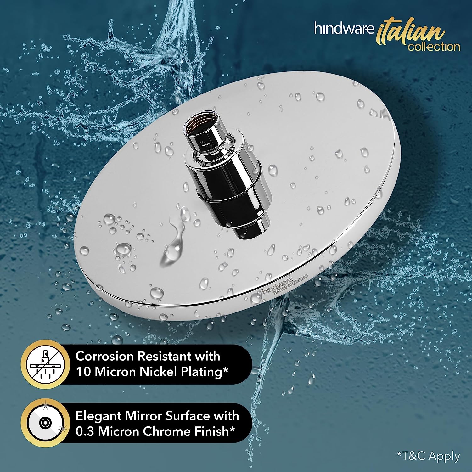 Hindware 204Mm Single Flow ABS Overhead Rain Shower Without Arm - Dark Grey