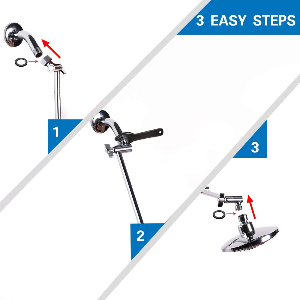 • 👍 EASY TOOL-FREE INSTALLATION - Our universal shower Arm quickly connects to any standard shower head within 5 mins. EXTRA Teflon Tape: Teflon Tape and came with Black leakproof pad to help with fitting the moment it arrives.