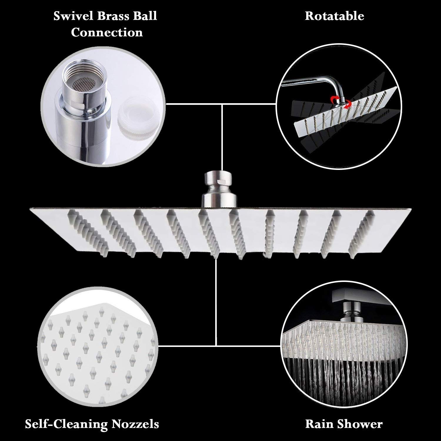 • stylish, nice look, high quality shower head - ANMEX 12inch rain shower is 100% heavy duty solid stainless steel with flexible silicone jets prevent lime scale build-up.