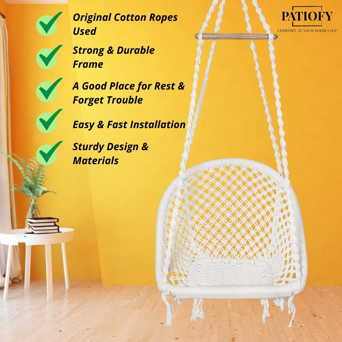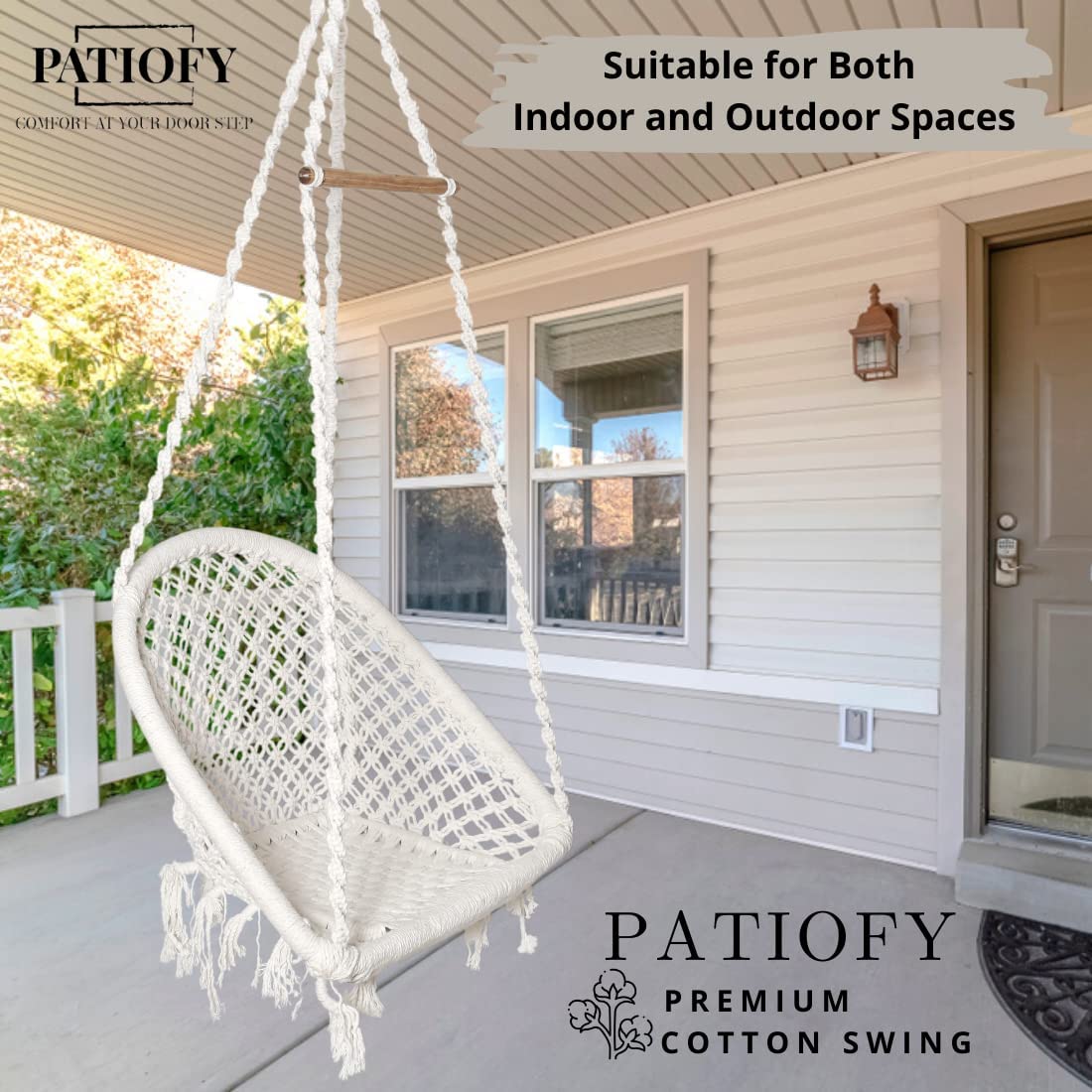 • PATIOFY D SHAPE COTTON HAMMOCK SWING CHAIR: Kick back and relax with our macrame hammock swing chair. The balcony hammock swing chair can be used as a comfortable and relaxing reading or meditation chair a swing for enjoying nature, watching a beautiful sunset, hanging poolside, or lounge on the back deck. Nestle into a cozy nest while reading. Listen to the sounds of nature all around you.