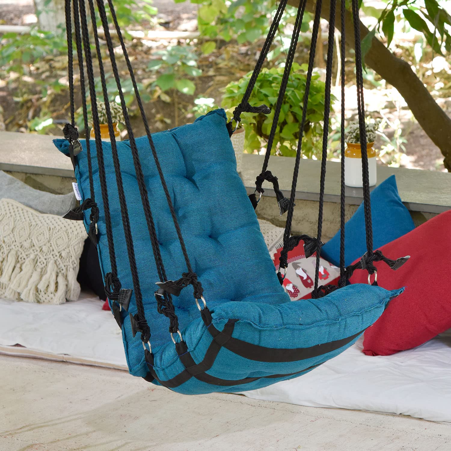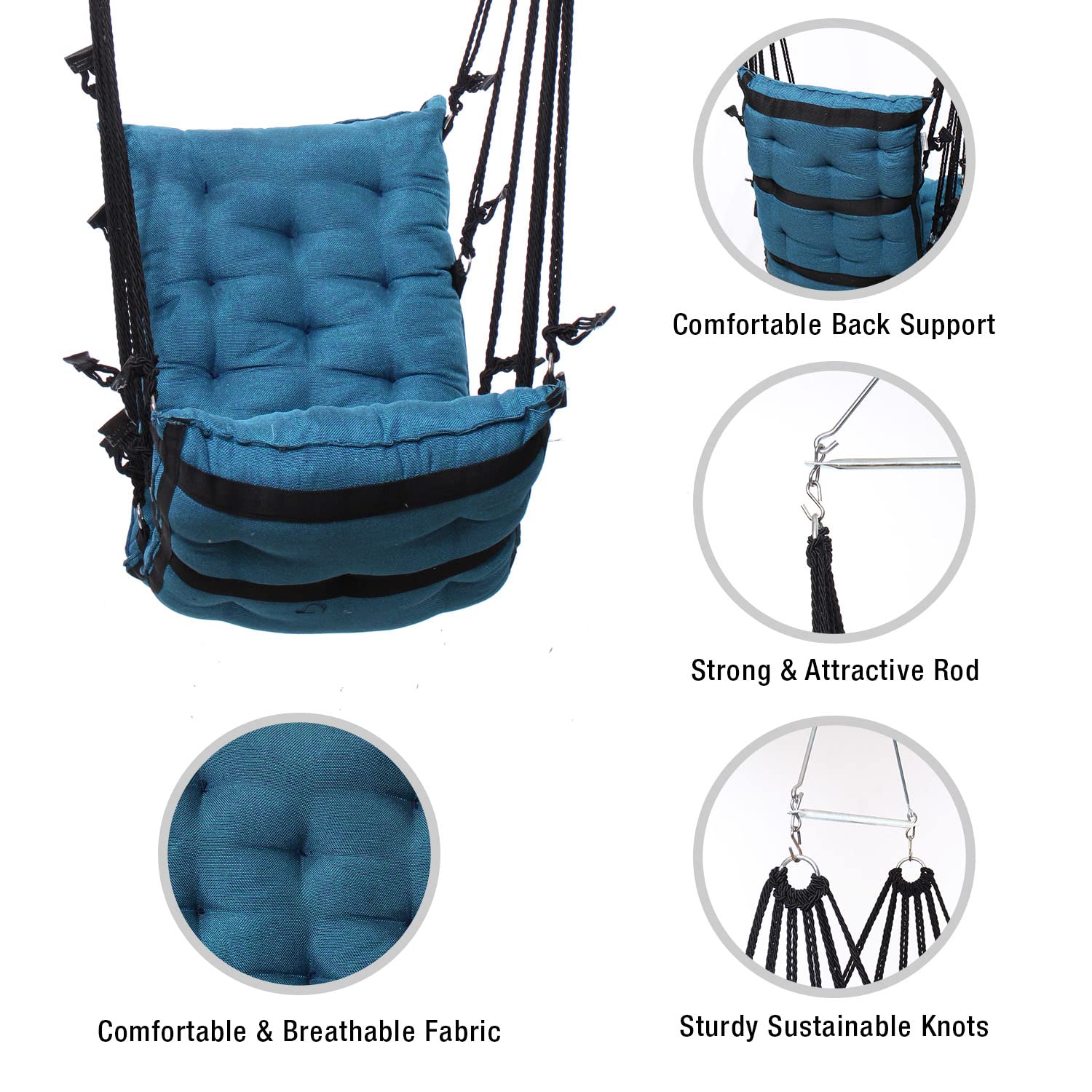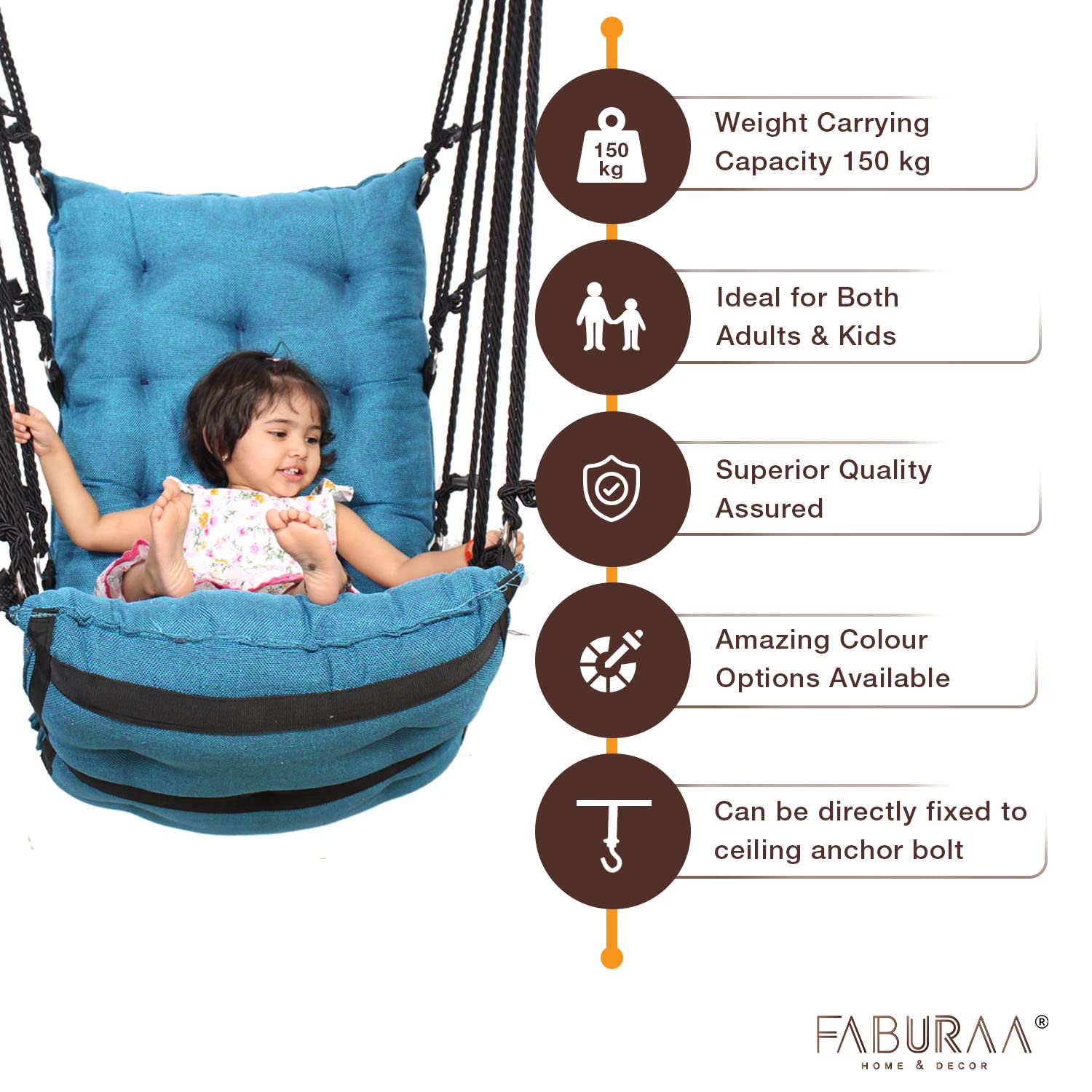 Faburaa Swing for Adult, Hammock Swing Chair, Hanging Chair for Balcony, Free Hanging Accessories (Jute Blue, Polyester)