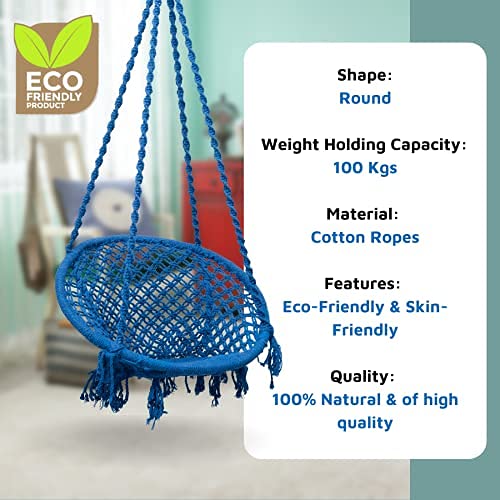 Curio Centre Make in India Round Cotton Rope Hanging Swing for Adults & Kids with Accessories/Swing Chair for Indoor,Outdoor,Home,Patio,Yard, Balcony,Garden (145x57x43cm,100 kgs Capacity-Blue)