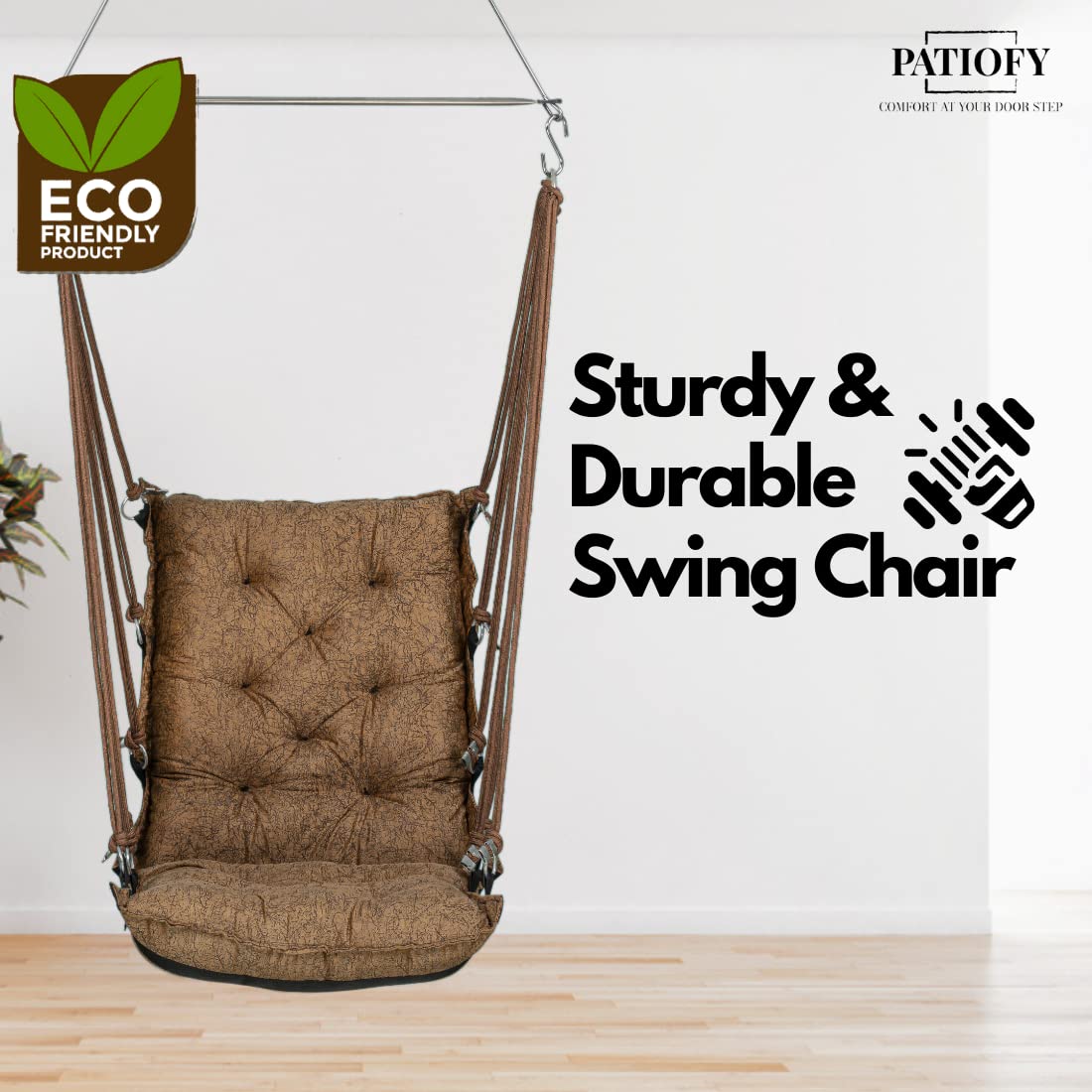 Jhula/Hanging Chair for Balcony/Hammock Swing for Adults/Swing for Adults for Home/Swing for Balcony/Unjal for Home Adults/Weight Capacity Upto 150Kgs (Coffee-Brown) by Patiofy