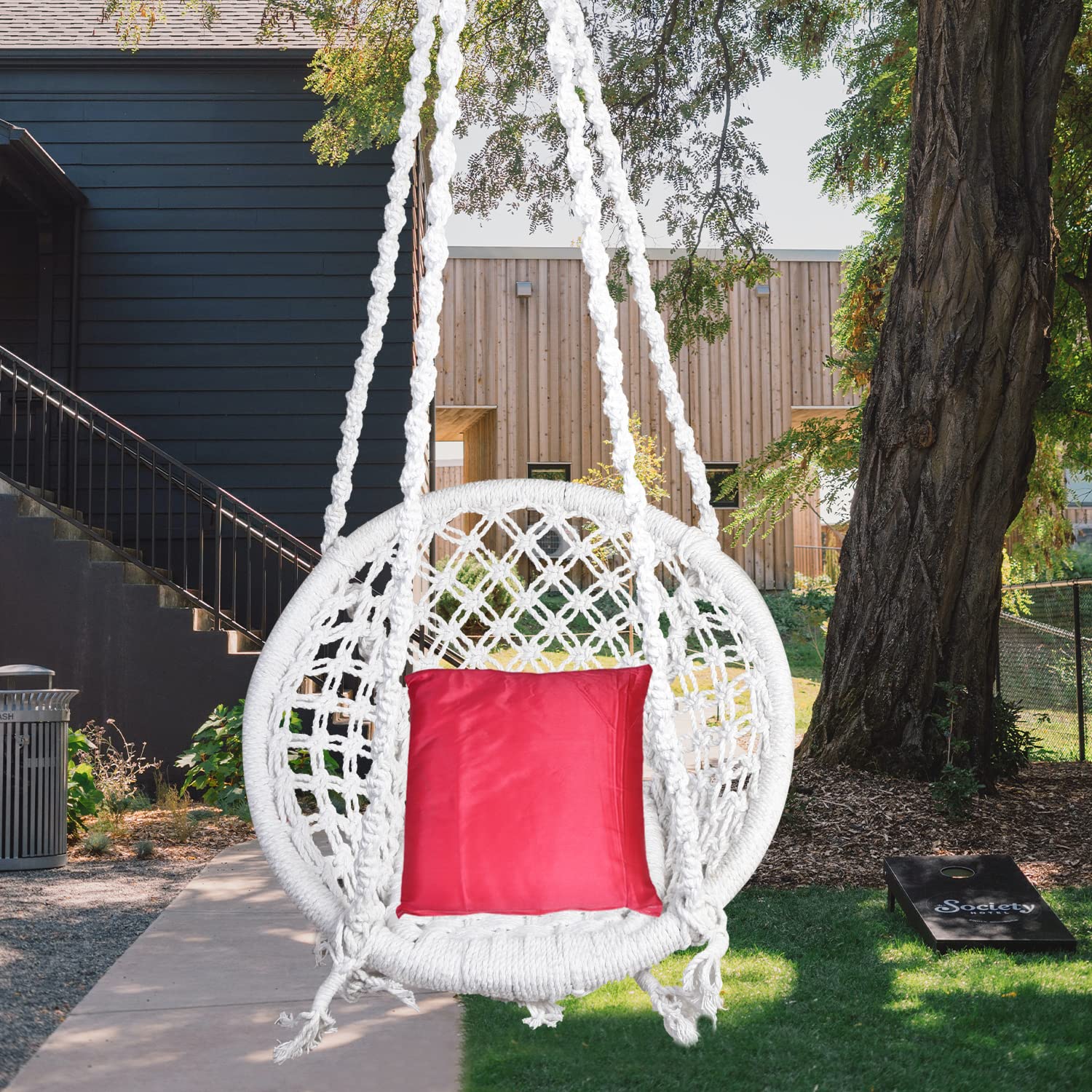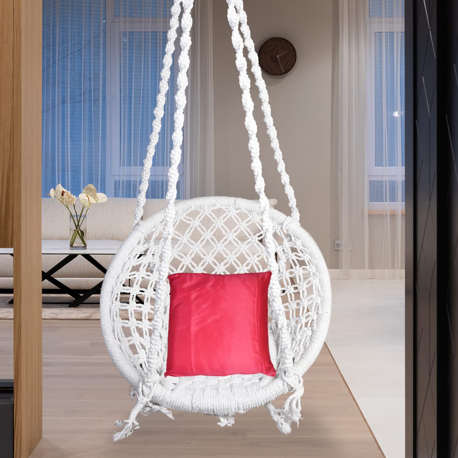 Halder Jute Regular Baby Round Garden Hanging Swing Chair (Cotton, 120*55*45 cm) (White)