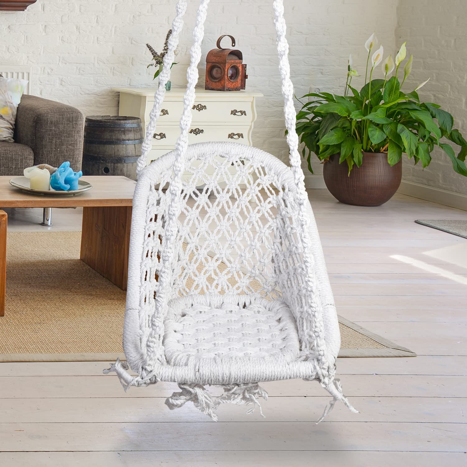 Halder Jute Regular Baby D Garden Hanging Swing Chair (Cotton, 120x55x45cm)(White)