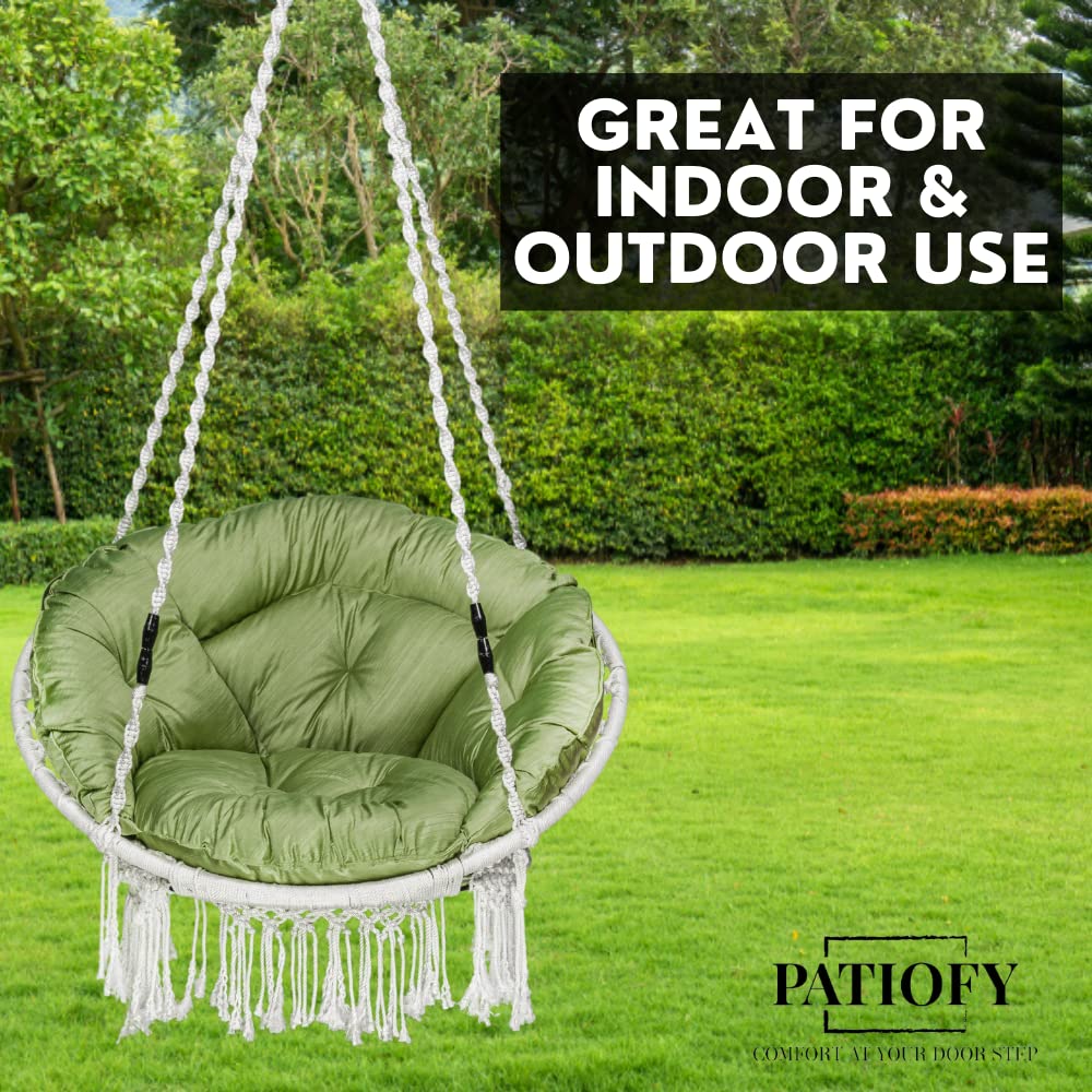 • PATIOFY Premium Swing Chair: This stylish swing chair with cushion is very cozy & durable. This swing chair is best for relaxing at home allows you to enjoy soft sponge comfort anytime & anywhere. This premium hanging jhula is the standard size & comfortable and it is big enough to have enough space to relax and stretch and enjoy full relaxation, something that other chairs can't do.