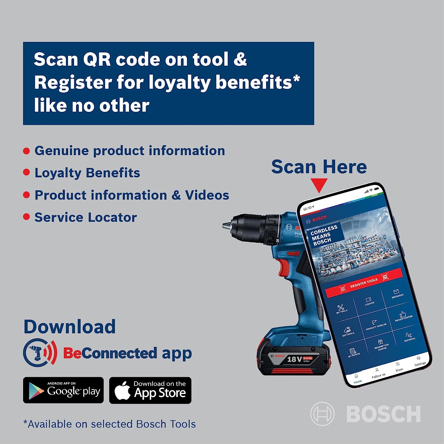 • Warranty – 1 Year from the date of invoice (provide invoice copy to claim warranty); For any queries please contact Bosch Power Tools India Customer Service Number (Toll Free). Join Bosch BeConnected for extended warranty & rewards