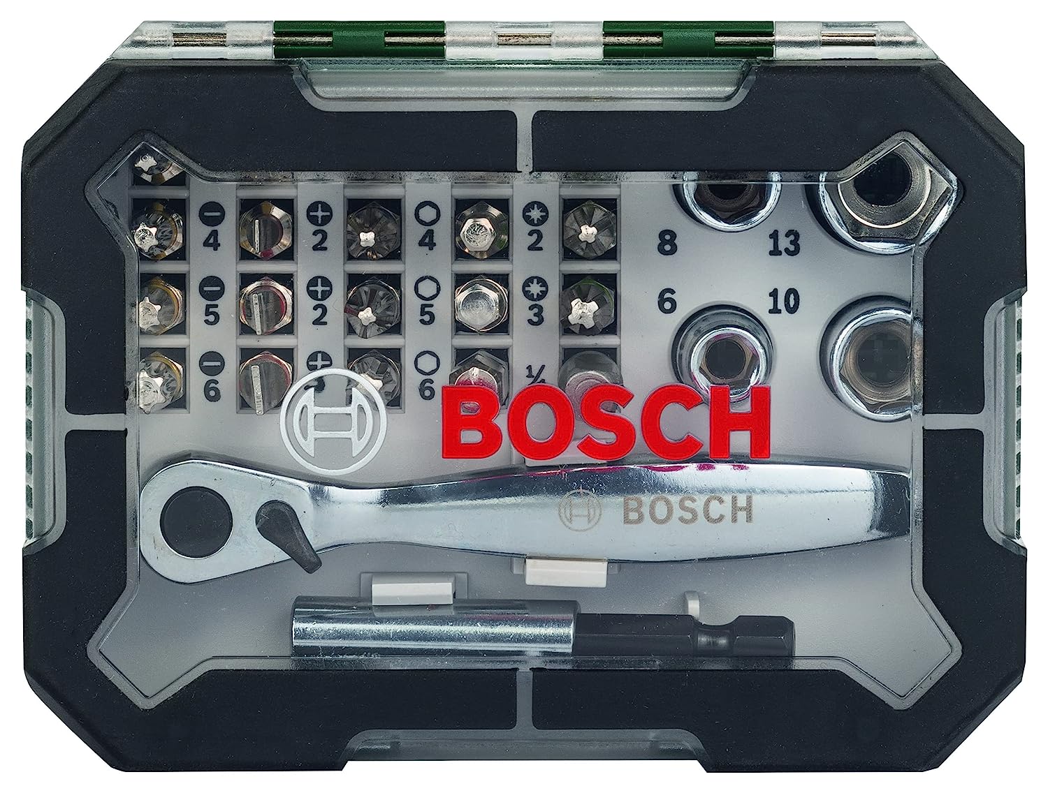 Bosch 2607017322 Metal Screwdriver Bit And Ratchet Set (Green and Black, 26-Pieces)