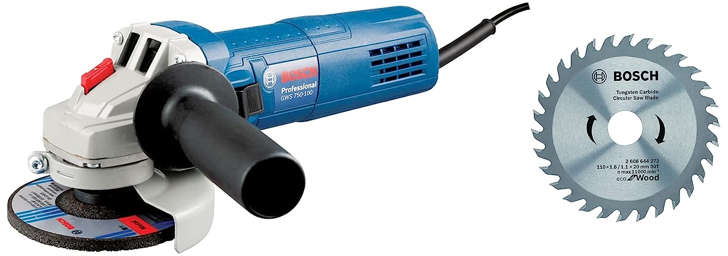 Bosch GWS 750-100 Professional Angle Grinder & 2608644275 TCT Wood Circular Saw Blade, 125 x 20, 40 Teeth, Eco Series