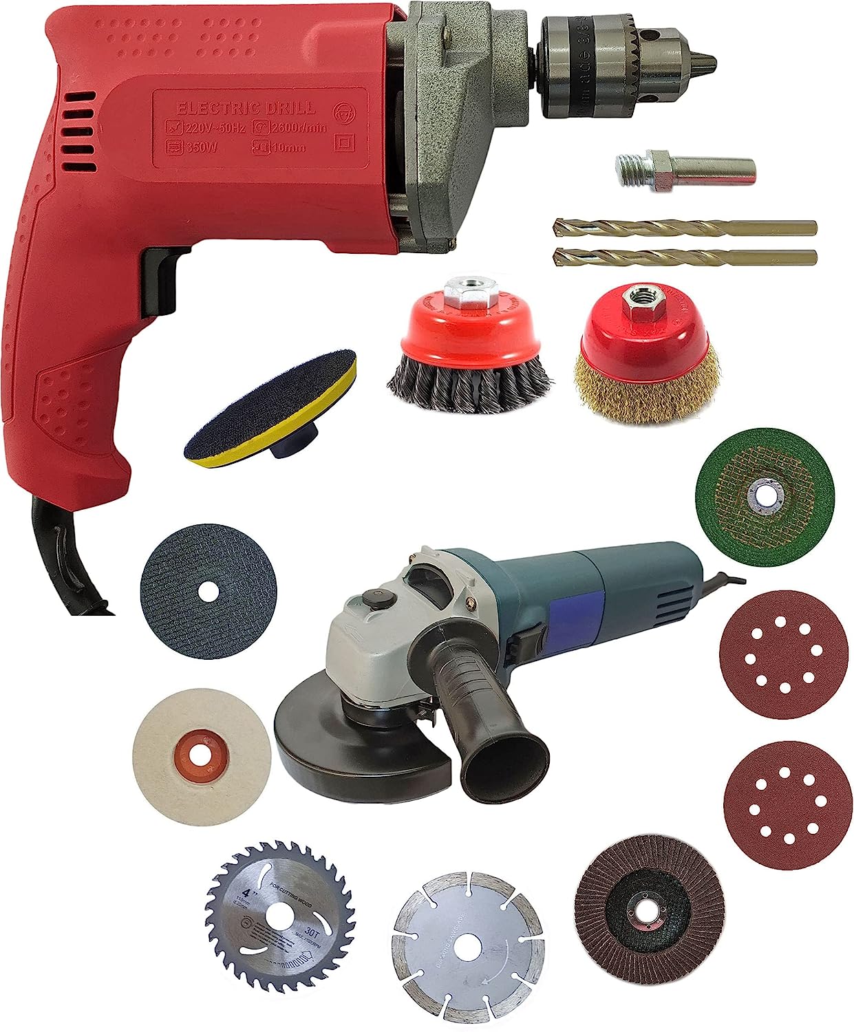 Inditrust 850W Angle grinder machine & 10mm Drill machine 11pc wheel 2pc Masonry 1pc Bolt Angle Grinder (100 mm Wheel Diameter)