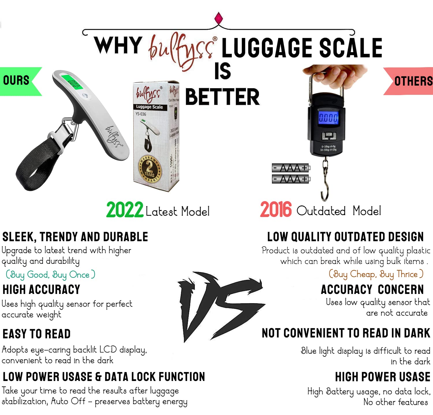 • [SIMPLE OPERATION] The luggage scale is straightforward and easy to use. Push button to switch measurement units between g, oz, kg, lbs. Push button under load to use tare, and again to reset scale back to zero.